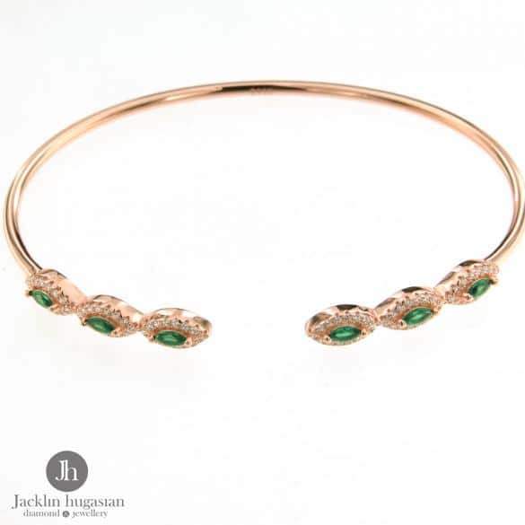 Гривна от " Jacklin hugasian " в розово сребро с изумруд и цирконий.Диаметър гривна 6 см.