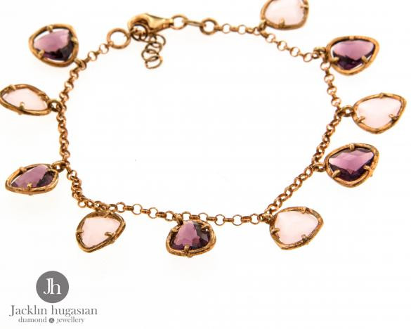 Гривна от "Jacklin hugasian" в розово сребро с розов кварц и лилав аметист. Дължина гривна 17 см. / с удължител/.