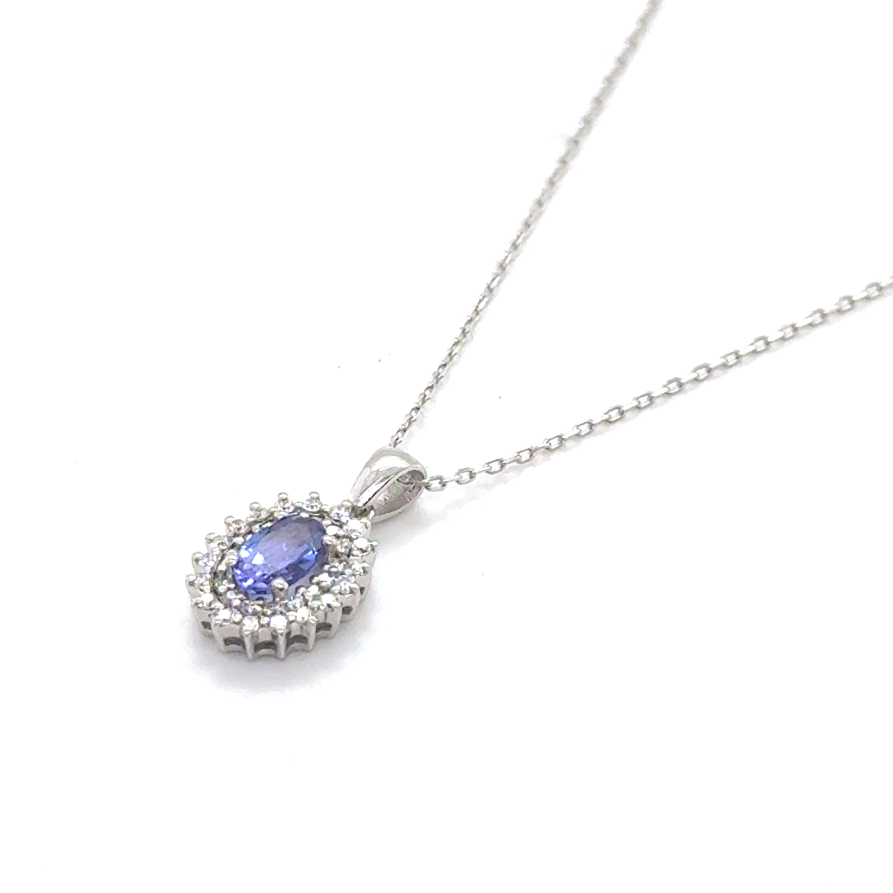 Колие от "Jacklin hugasian" в бяло злато с диаманти и танзанит.