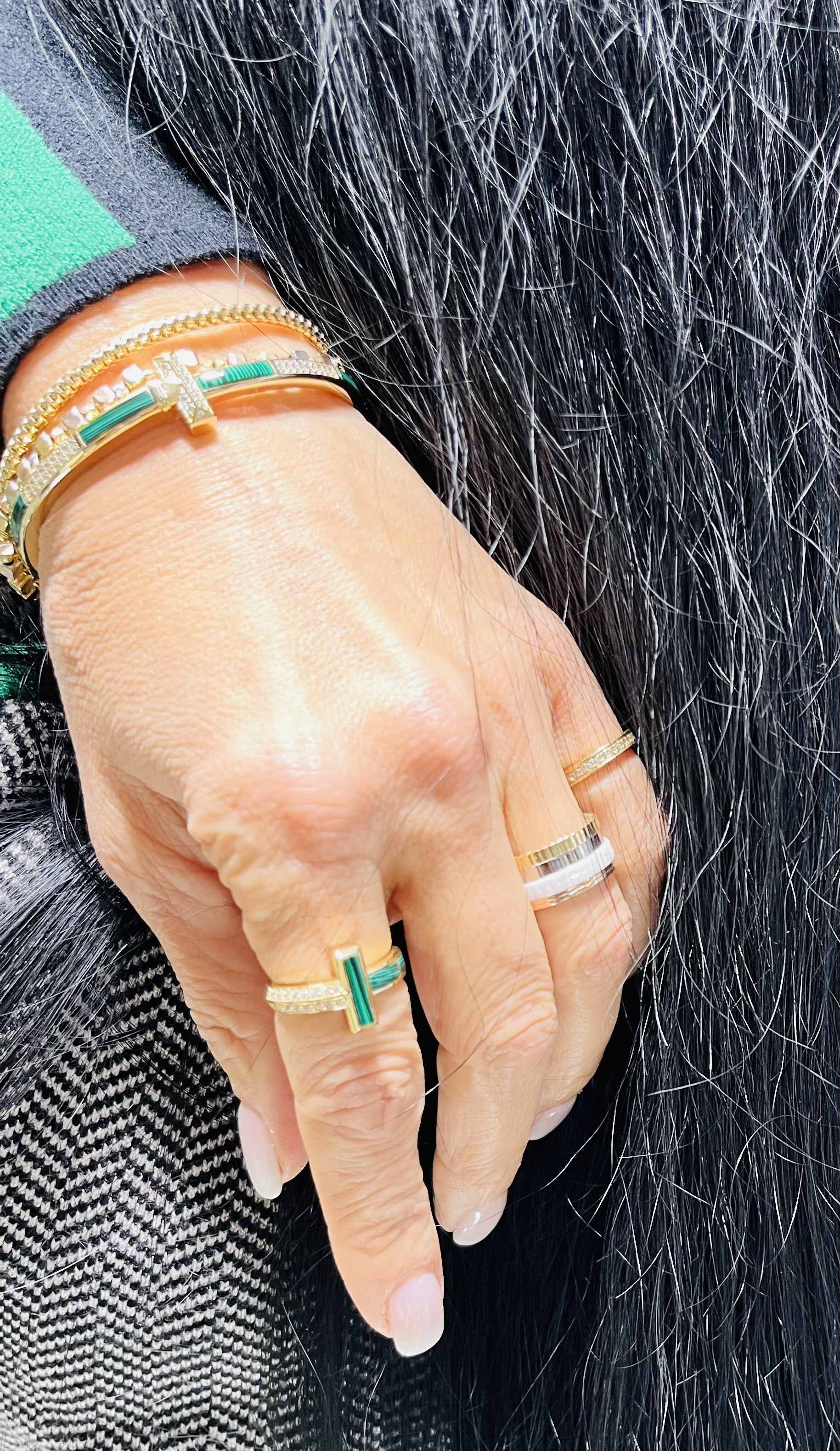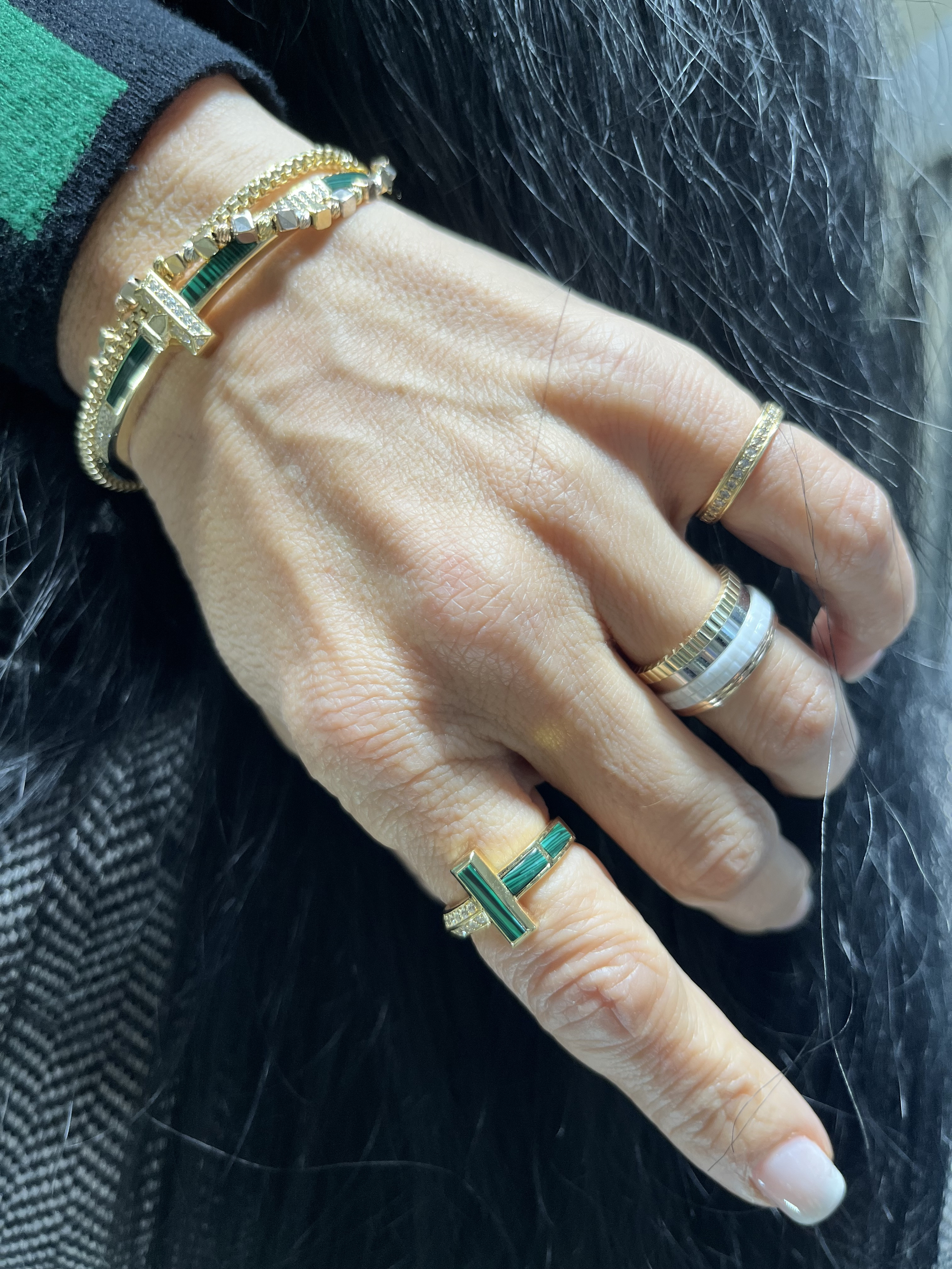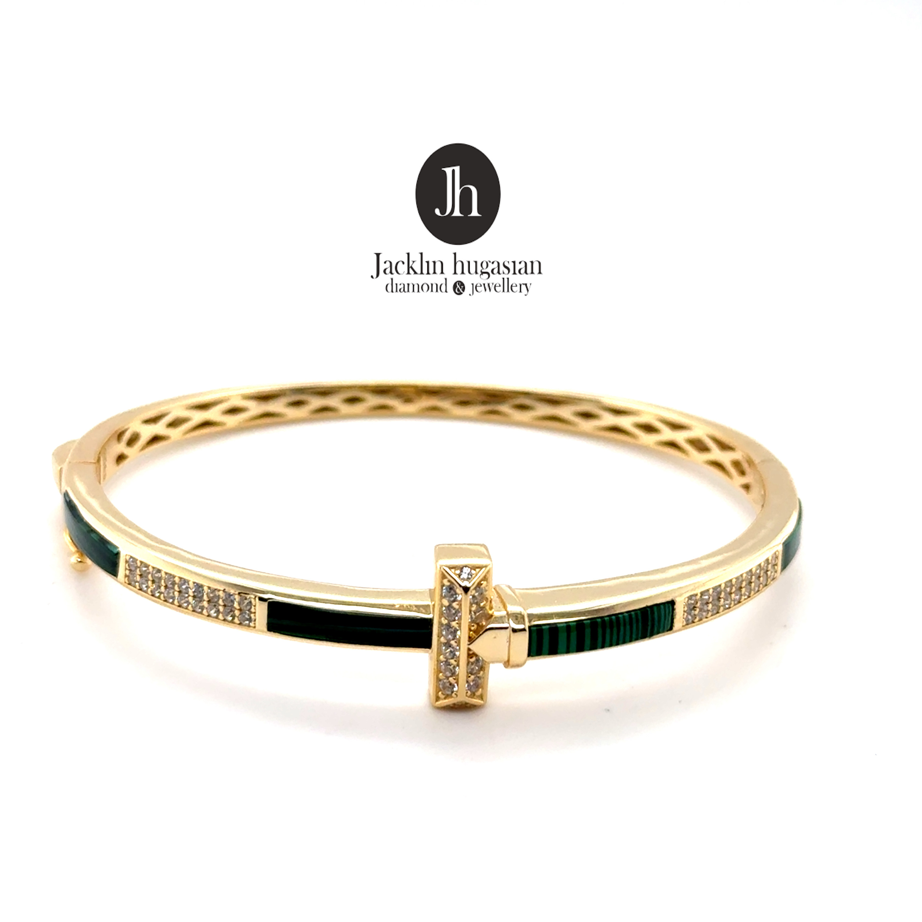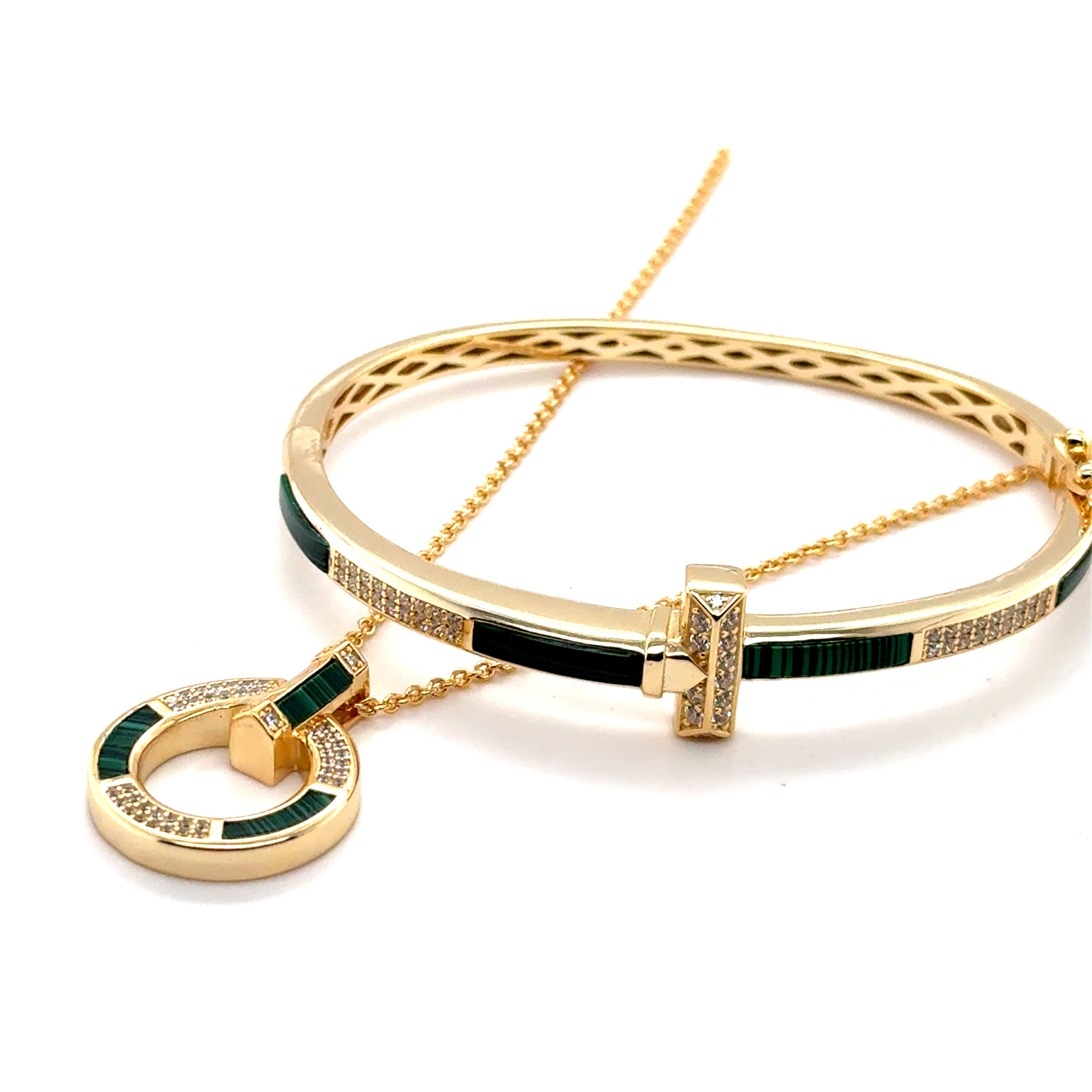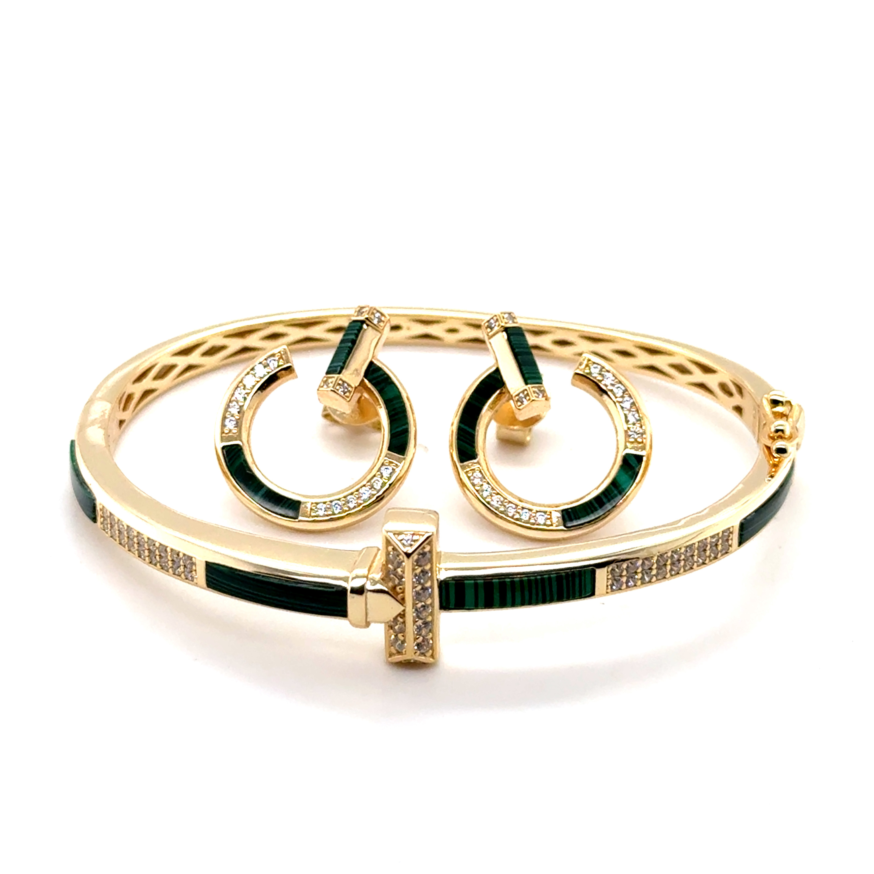 Комплект от “Jacklin hugasian” в сребро с позлата, малахит и циркони.