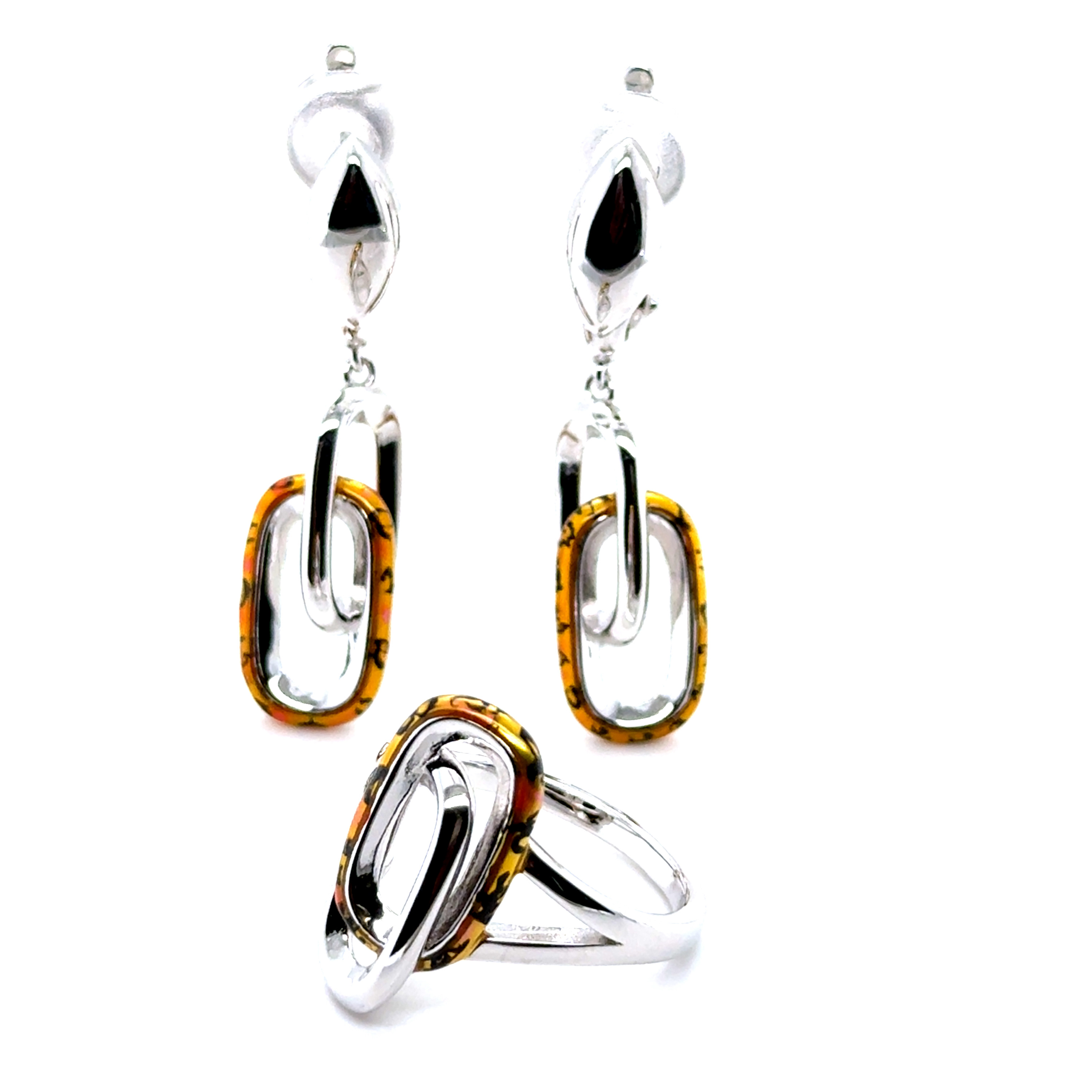 Комплект от "Jacklin hugasian" в сребро с цветен емайл.