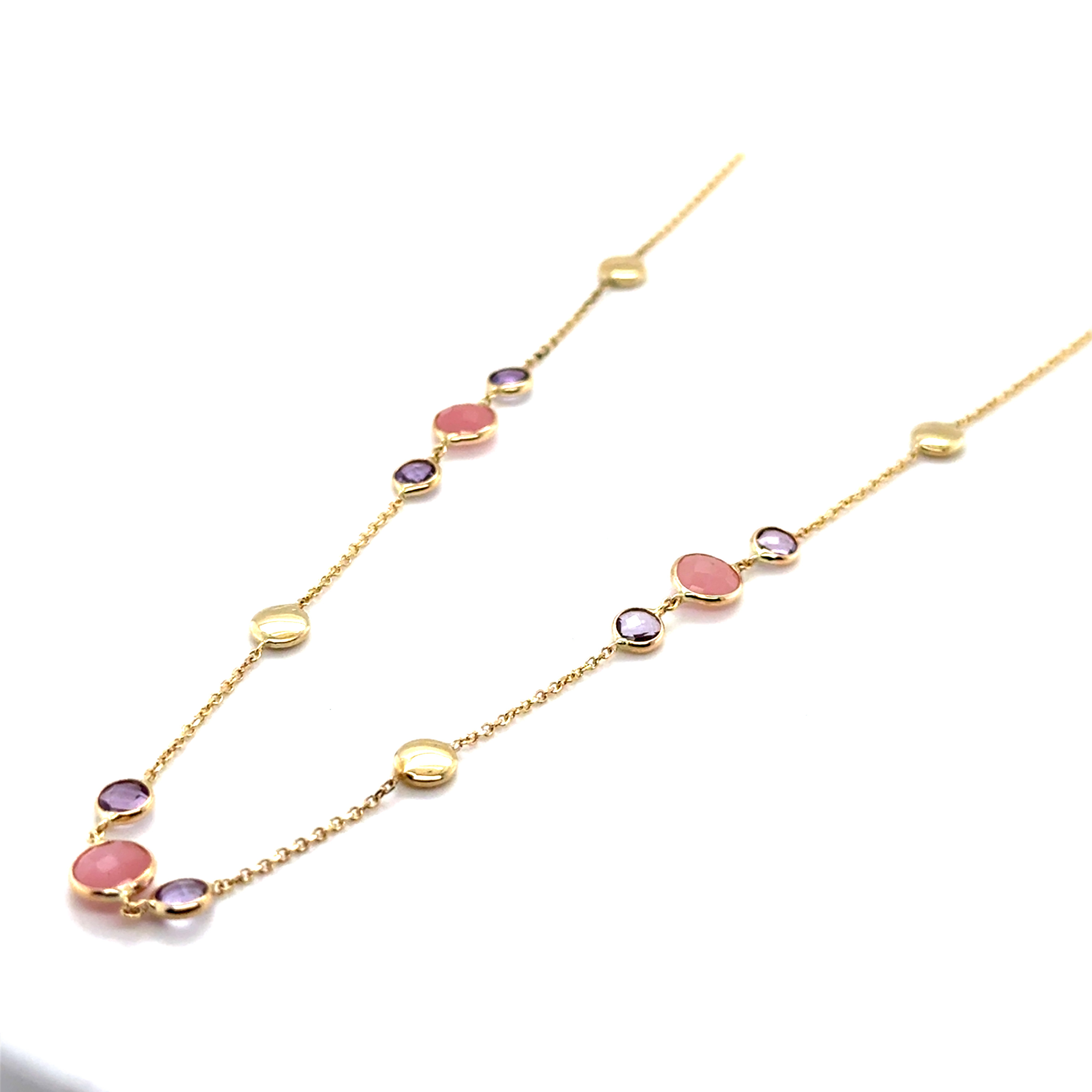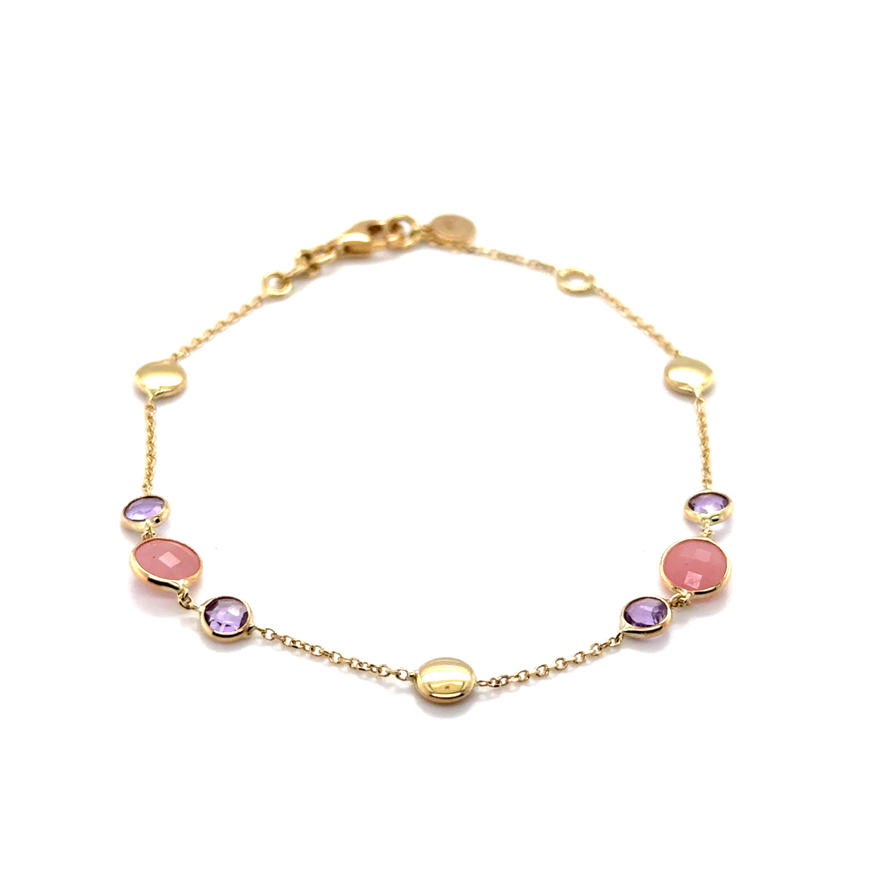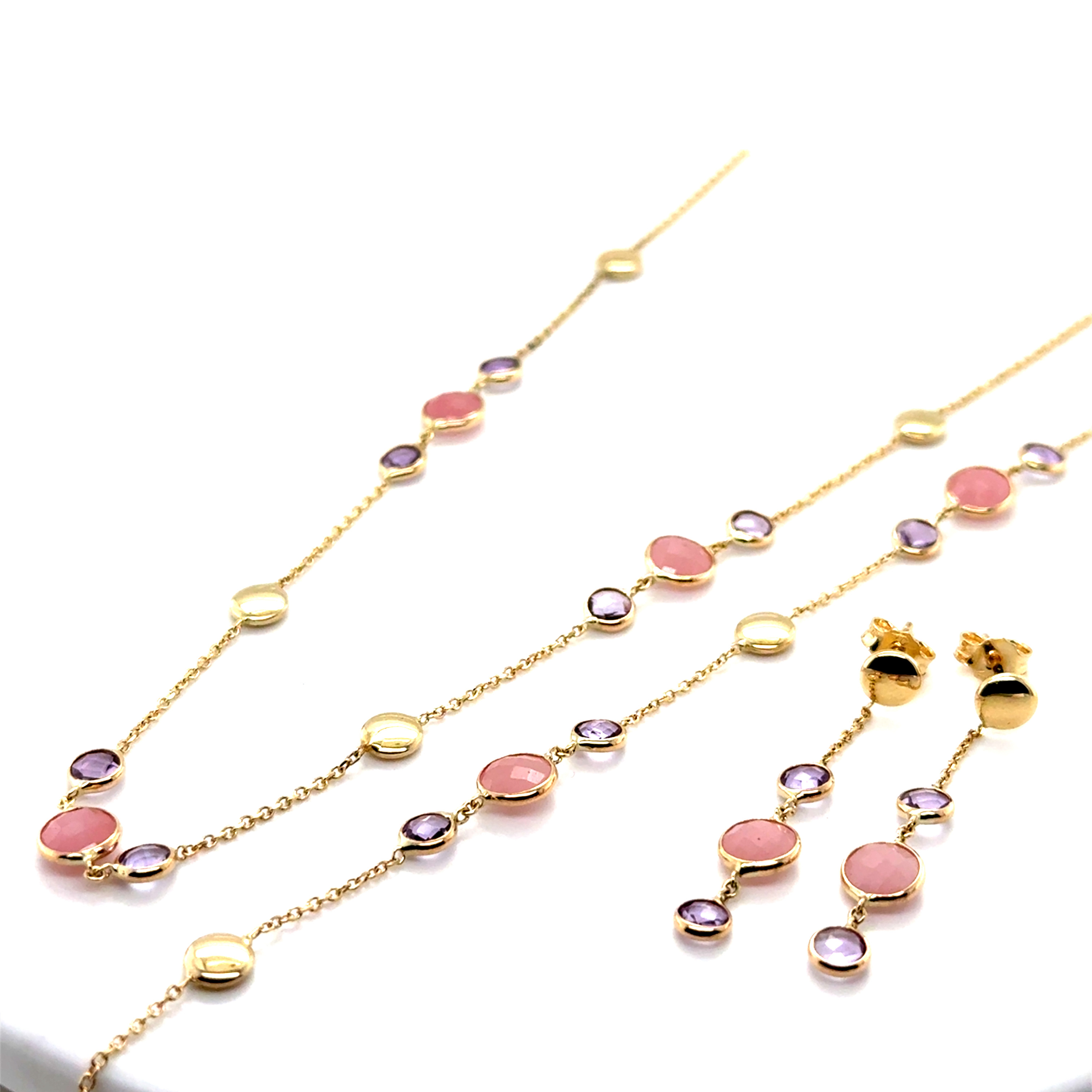Комплект обеци, колие и гривна от “Jacklin hugasian” в жълто злато с аметист и розов кварц