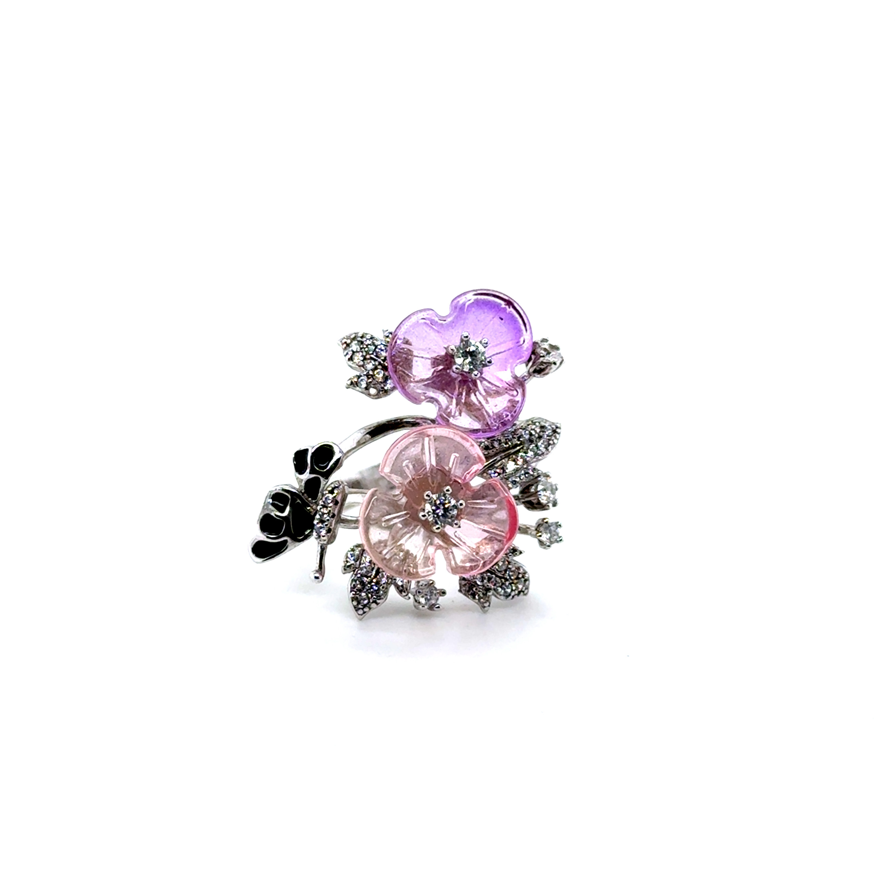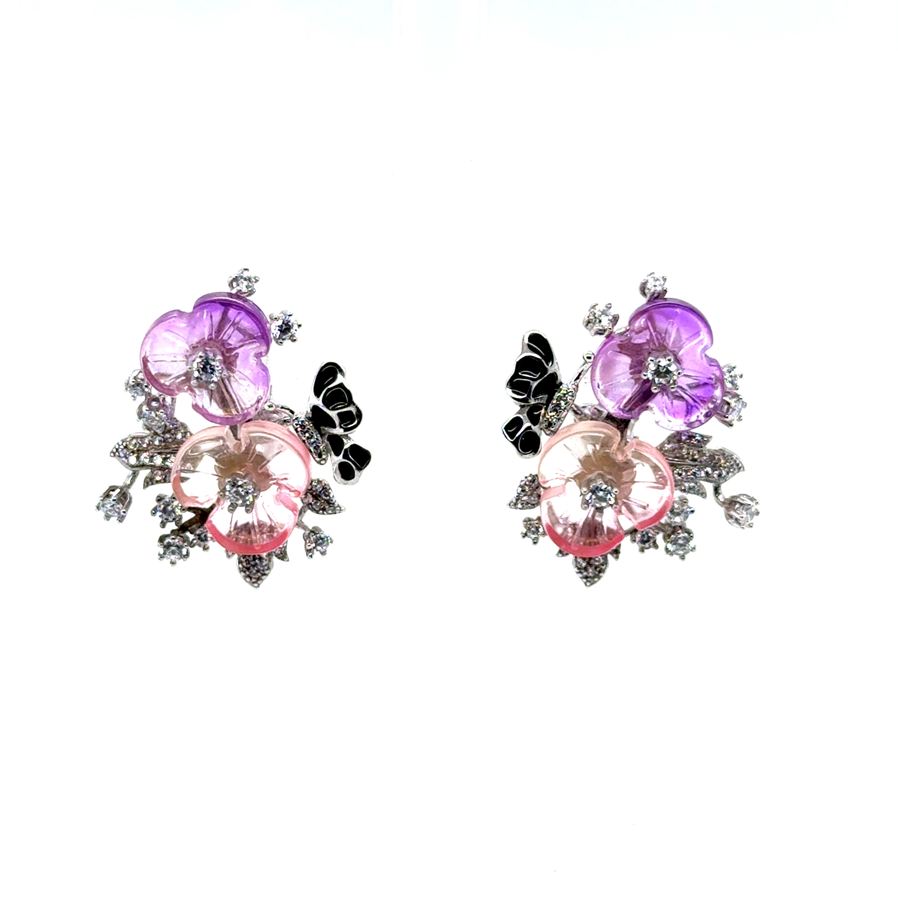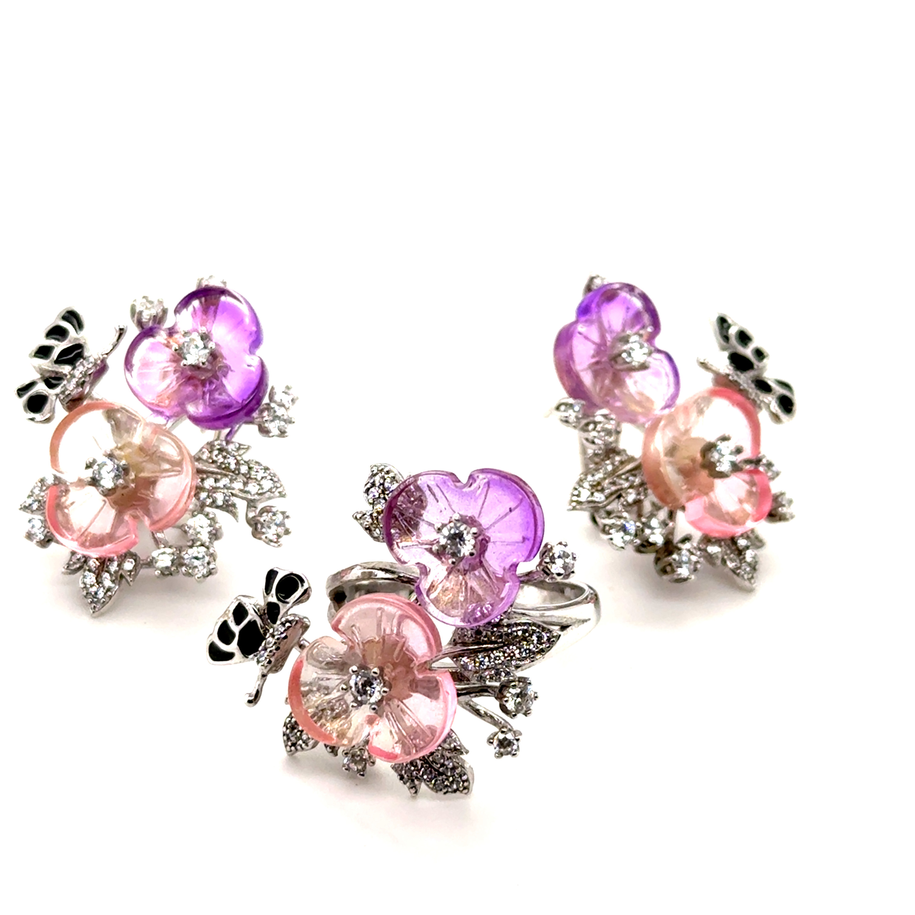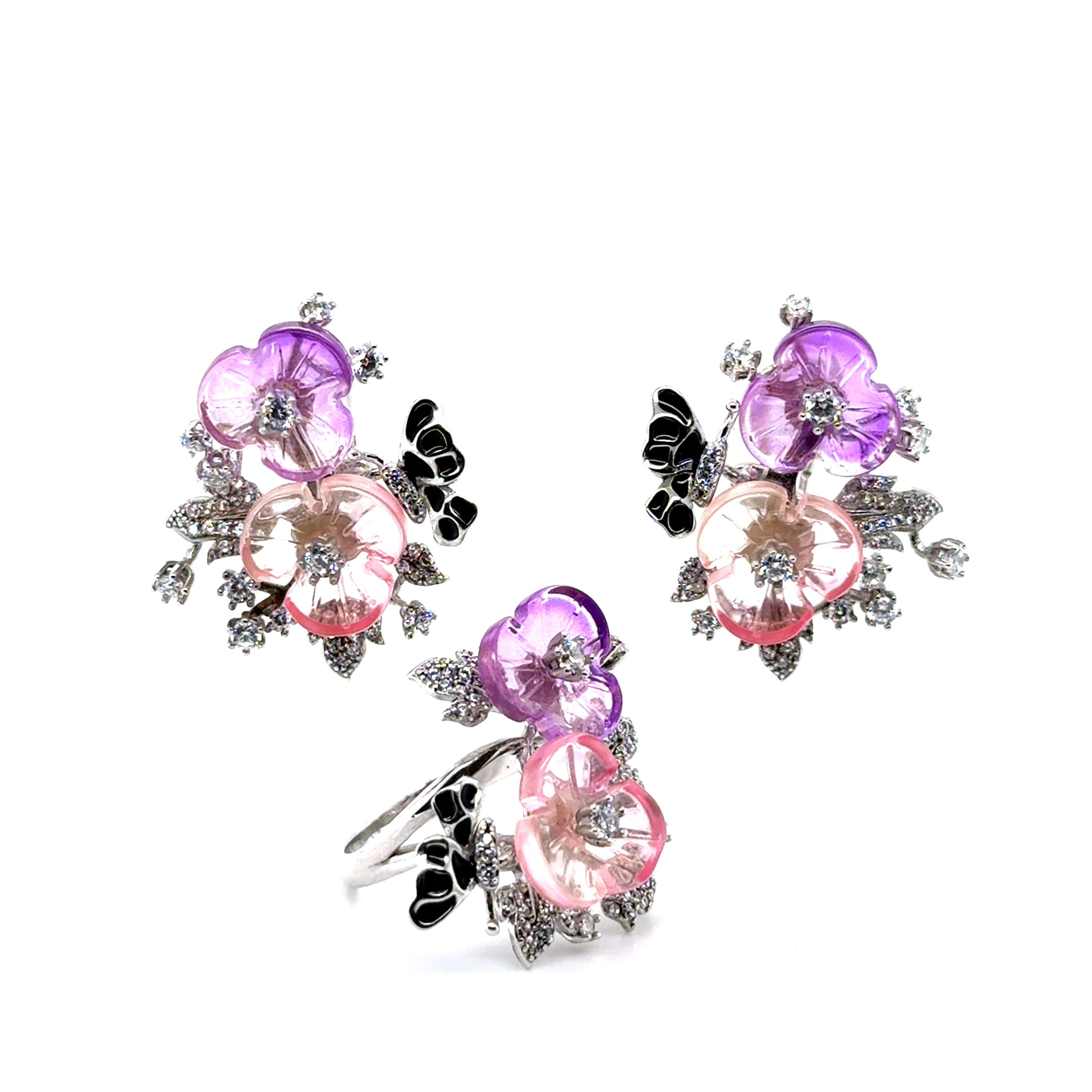 Комплект пръстен и обеци от “Jacklin hugasian” в сребро с емайл, цветен кварц и циркони.