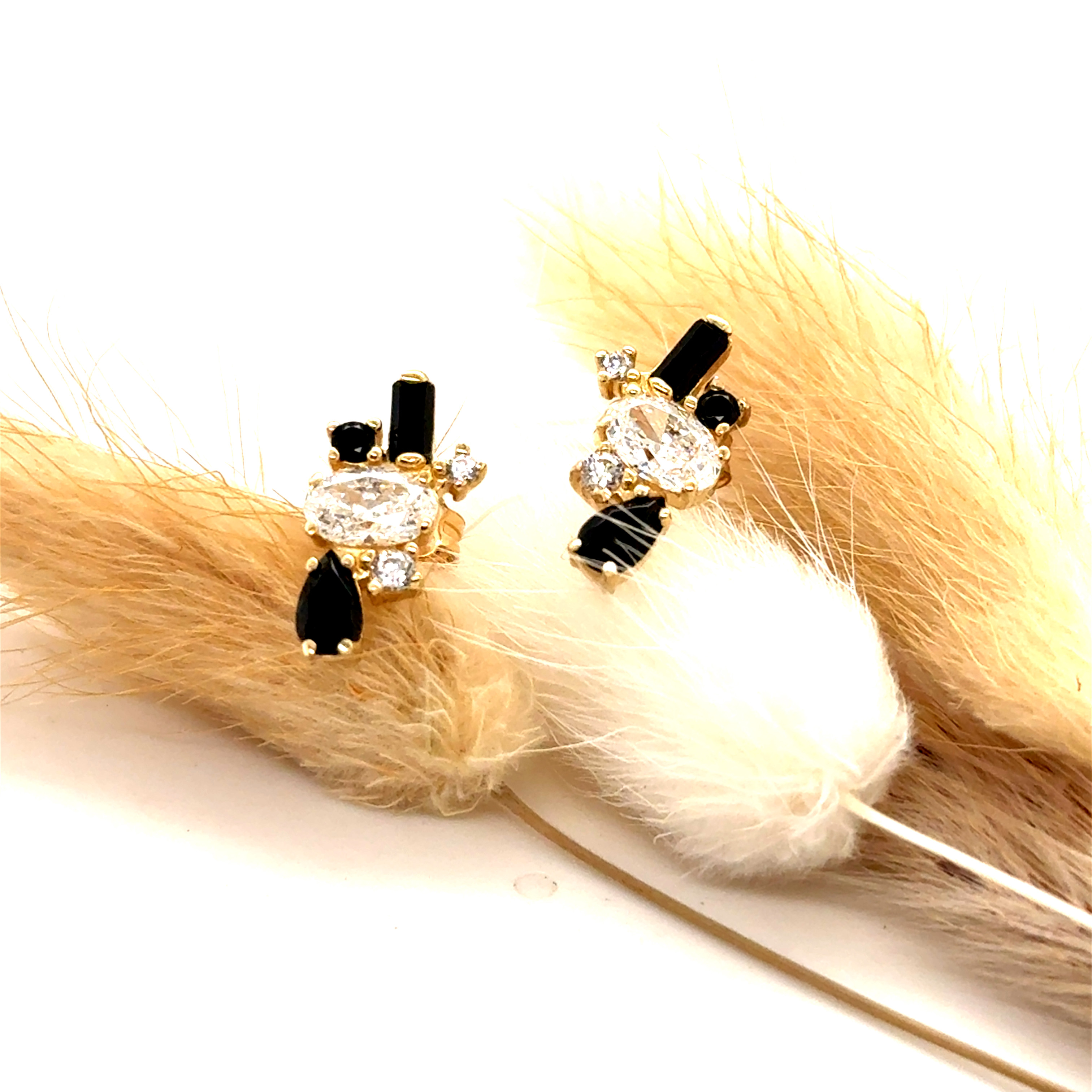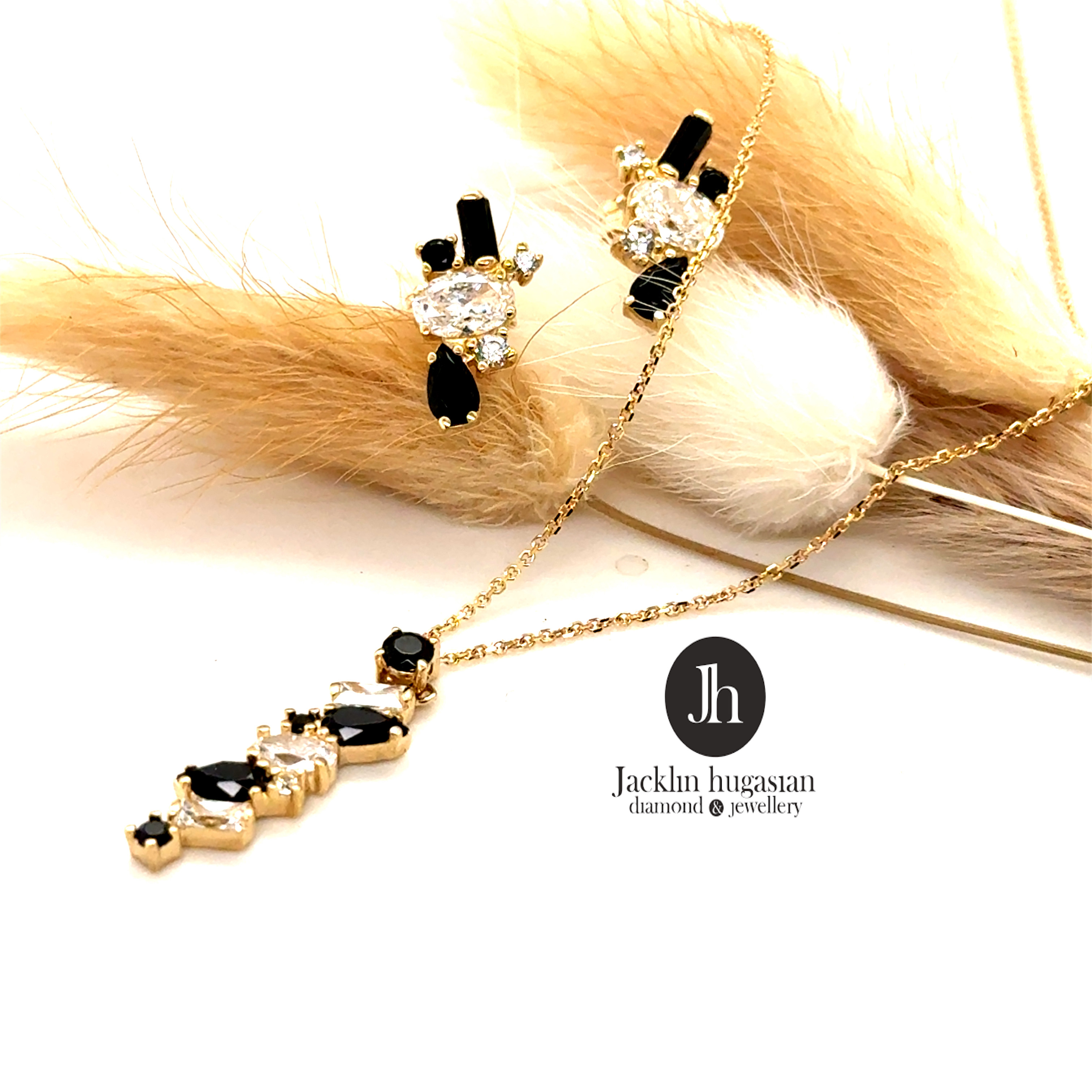 Комплект от “Jacklin hugasian” в жълто злато с оникс и цирконий.