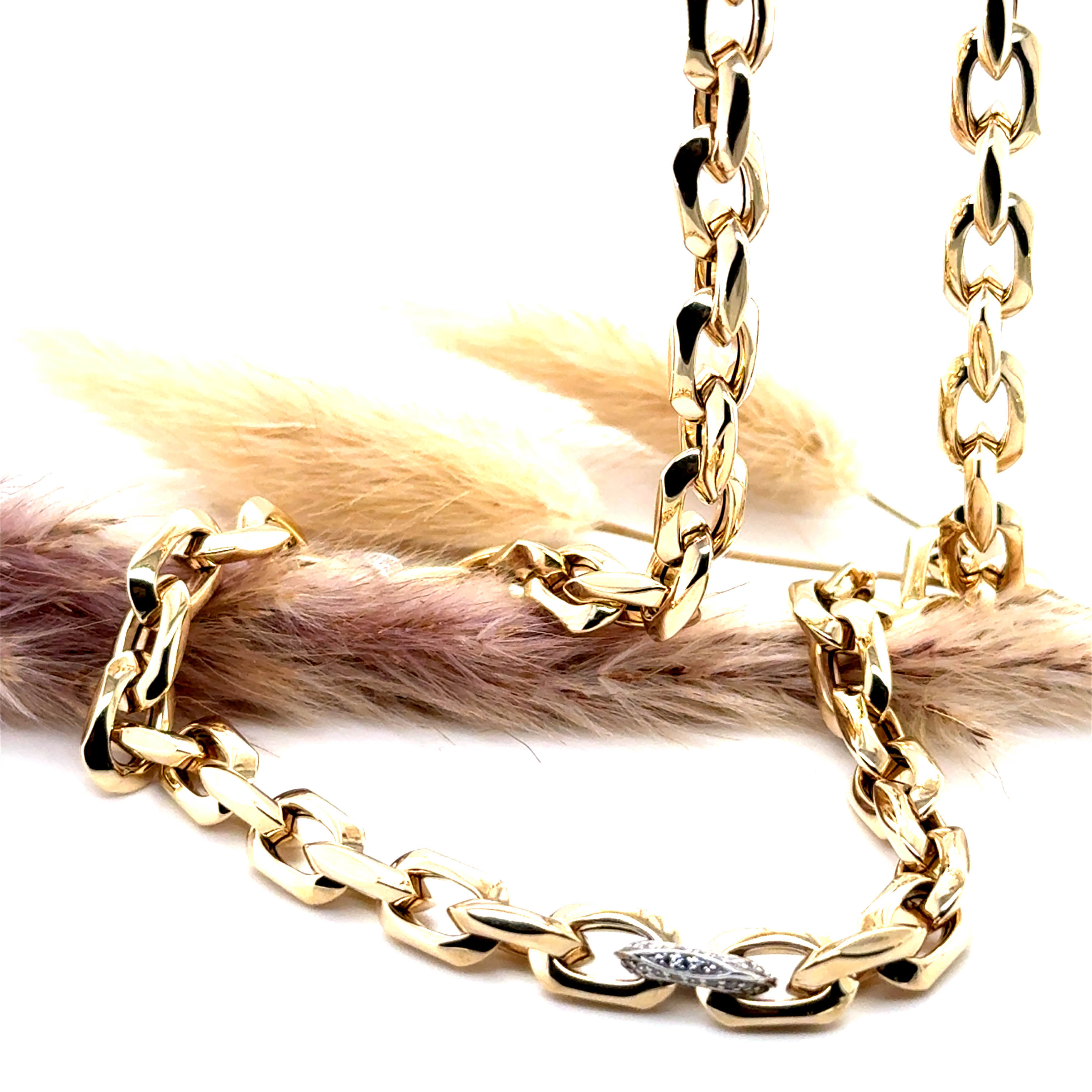 Колие от “Jacklin hugasian” в жълто и бяло злато ,с циркони