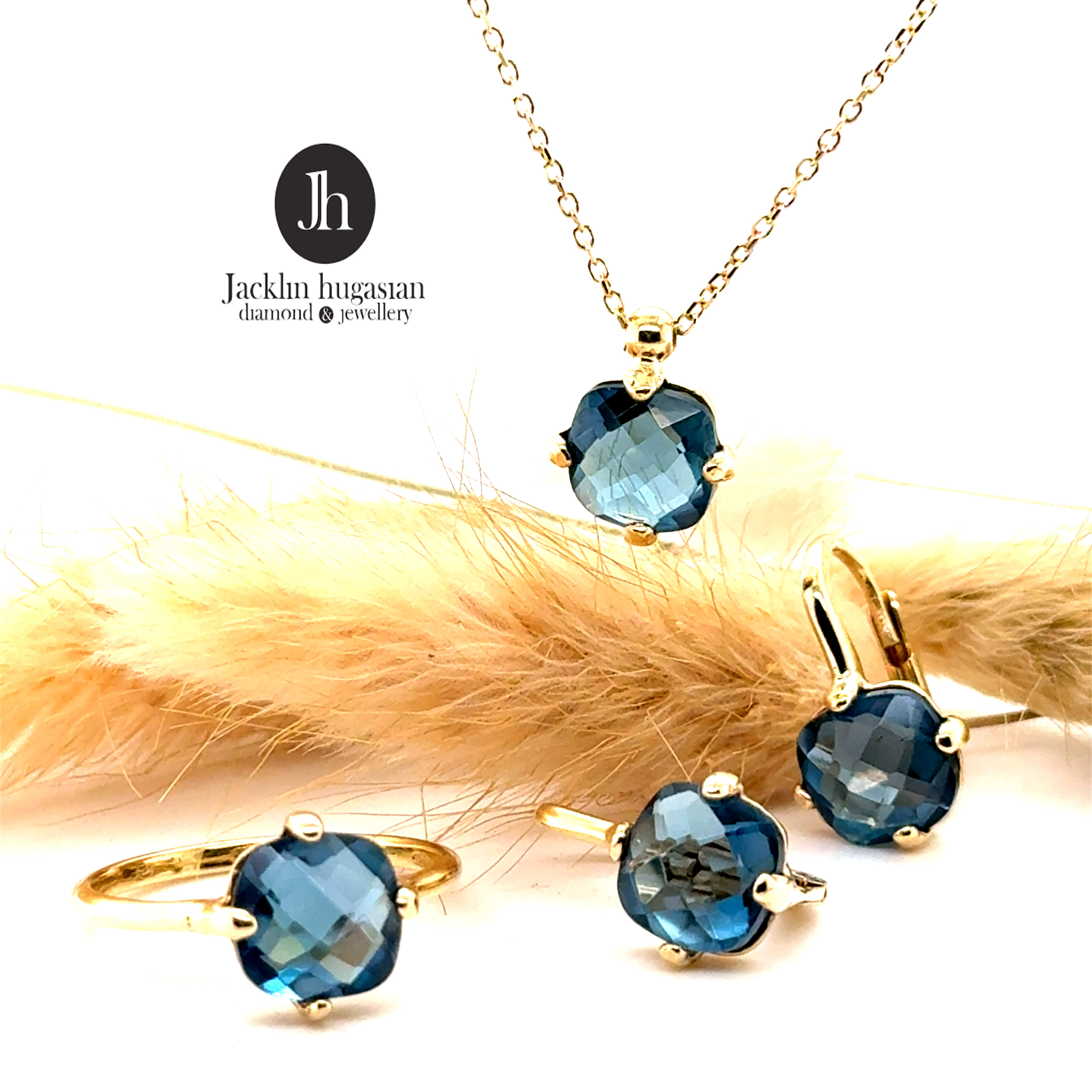 Комплект от “Jacklin hugasian” в жълто злато с лондон топаз