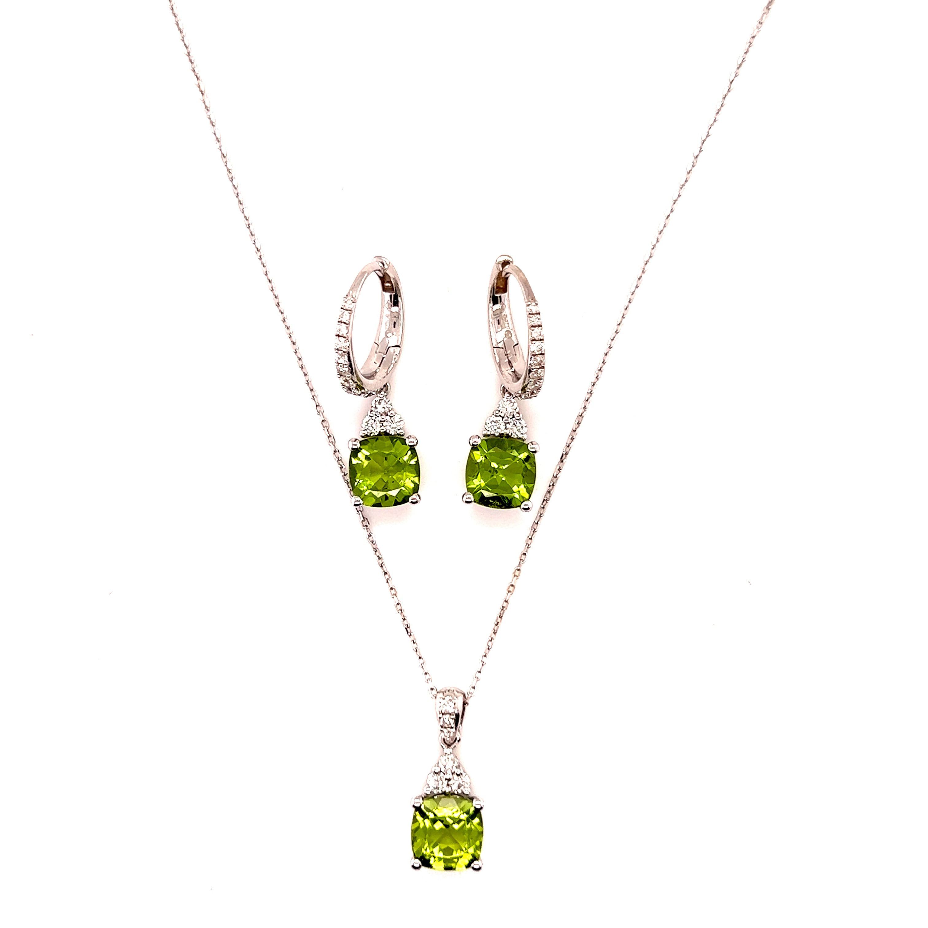 Комплект от “Jacklin hugasian” бяло злато с диаманти и перидот.