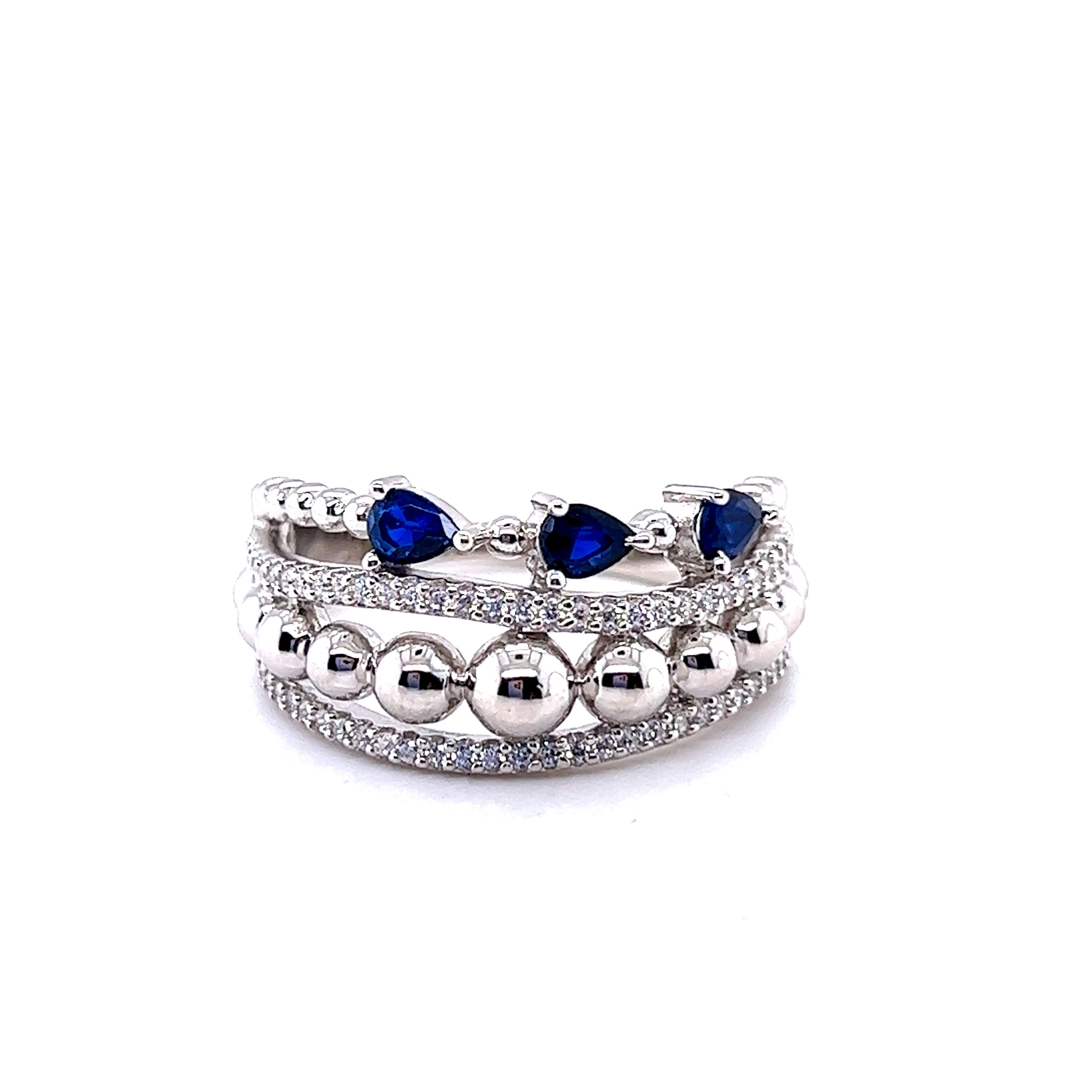 Пръстен от “Jacklin hugasian” в сребро със сапфир и циркони.