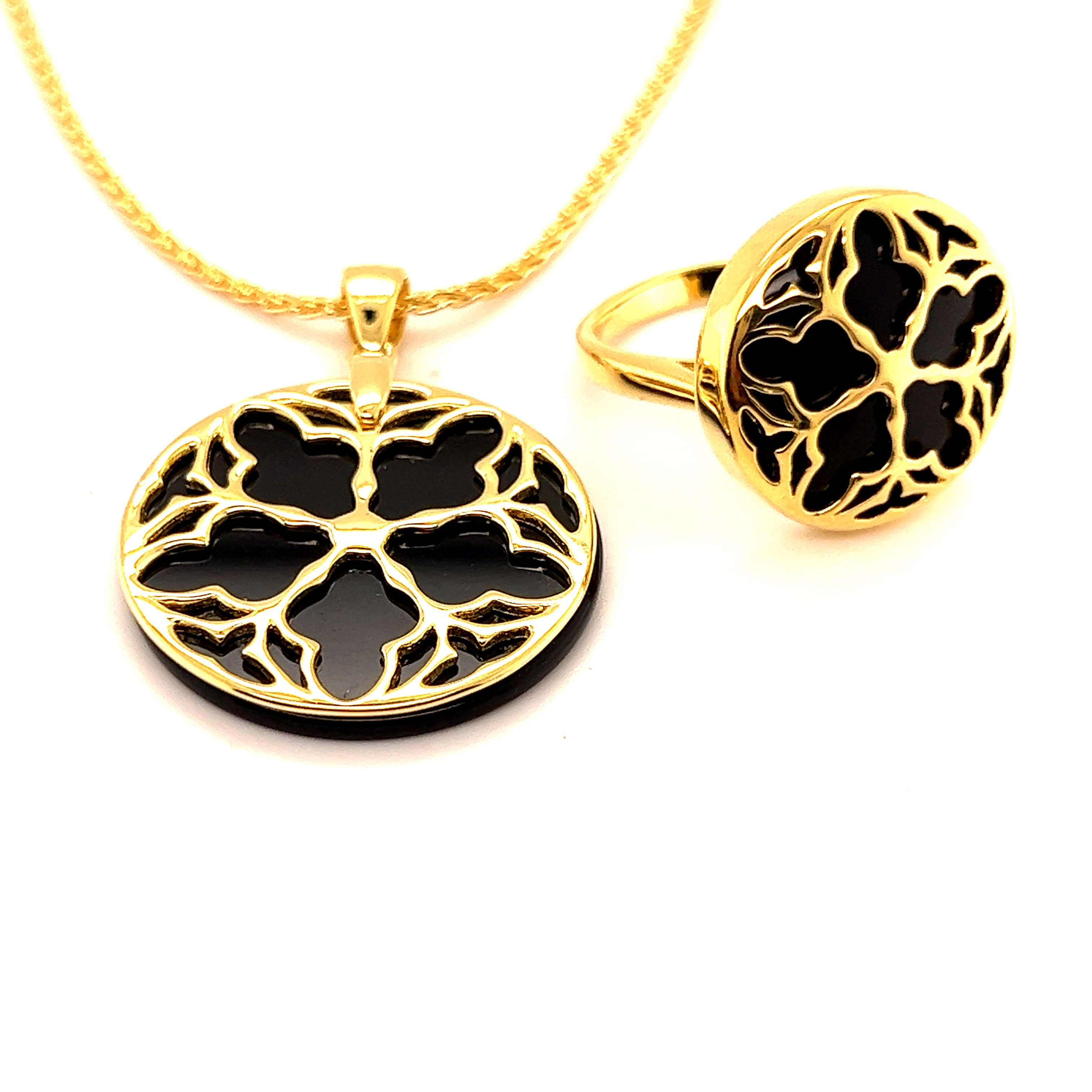 Колие от “Jacklin hugasian” в сребро с позлата и оникс.