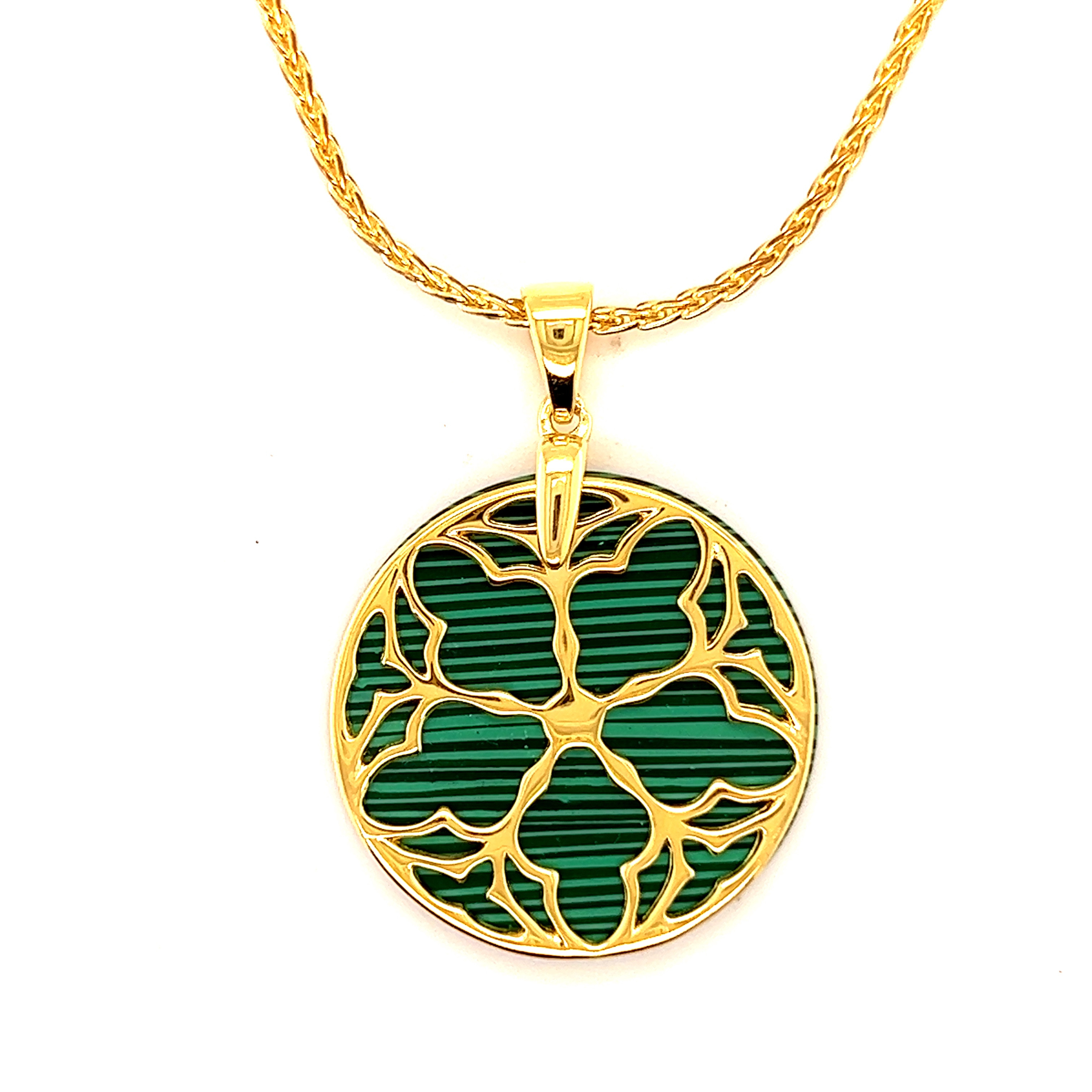 Медальон от “Jacklin hugasian” в сребро с позлата и малахит.