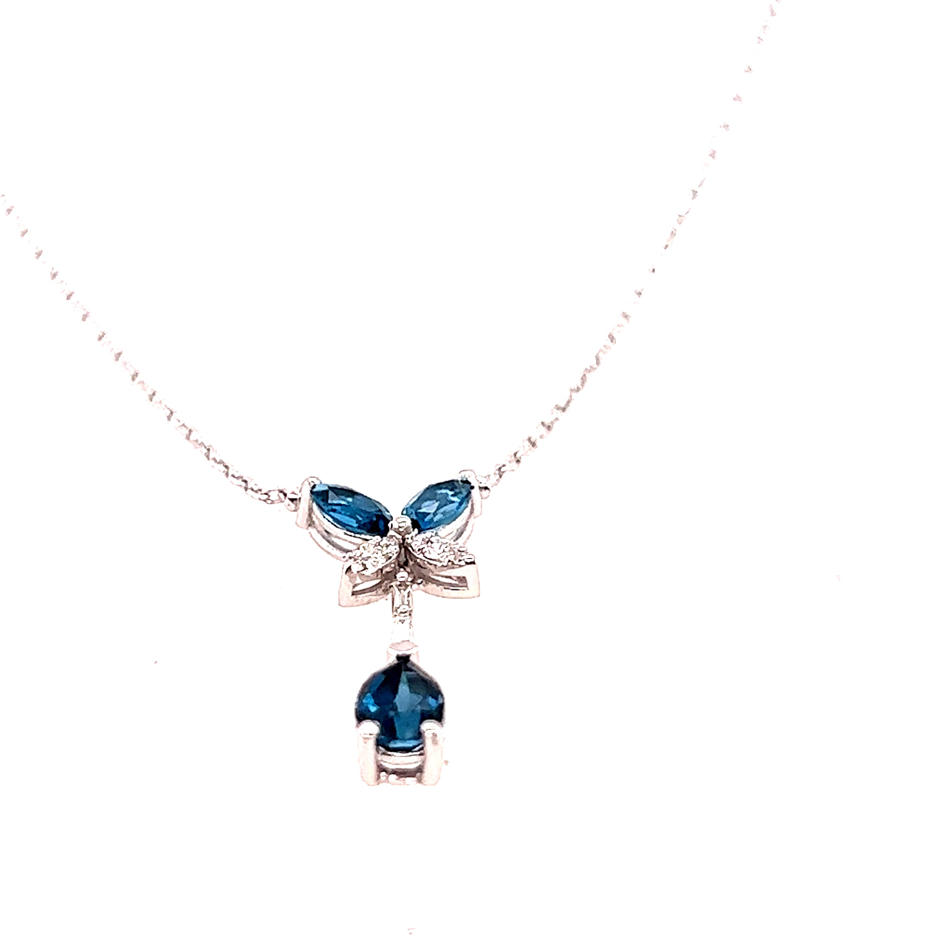 Колие от "Jacklin hugasian" в бяло злато с диаманти и Лондон топаз.