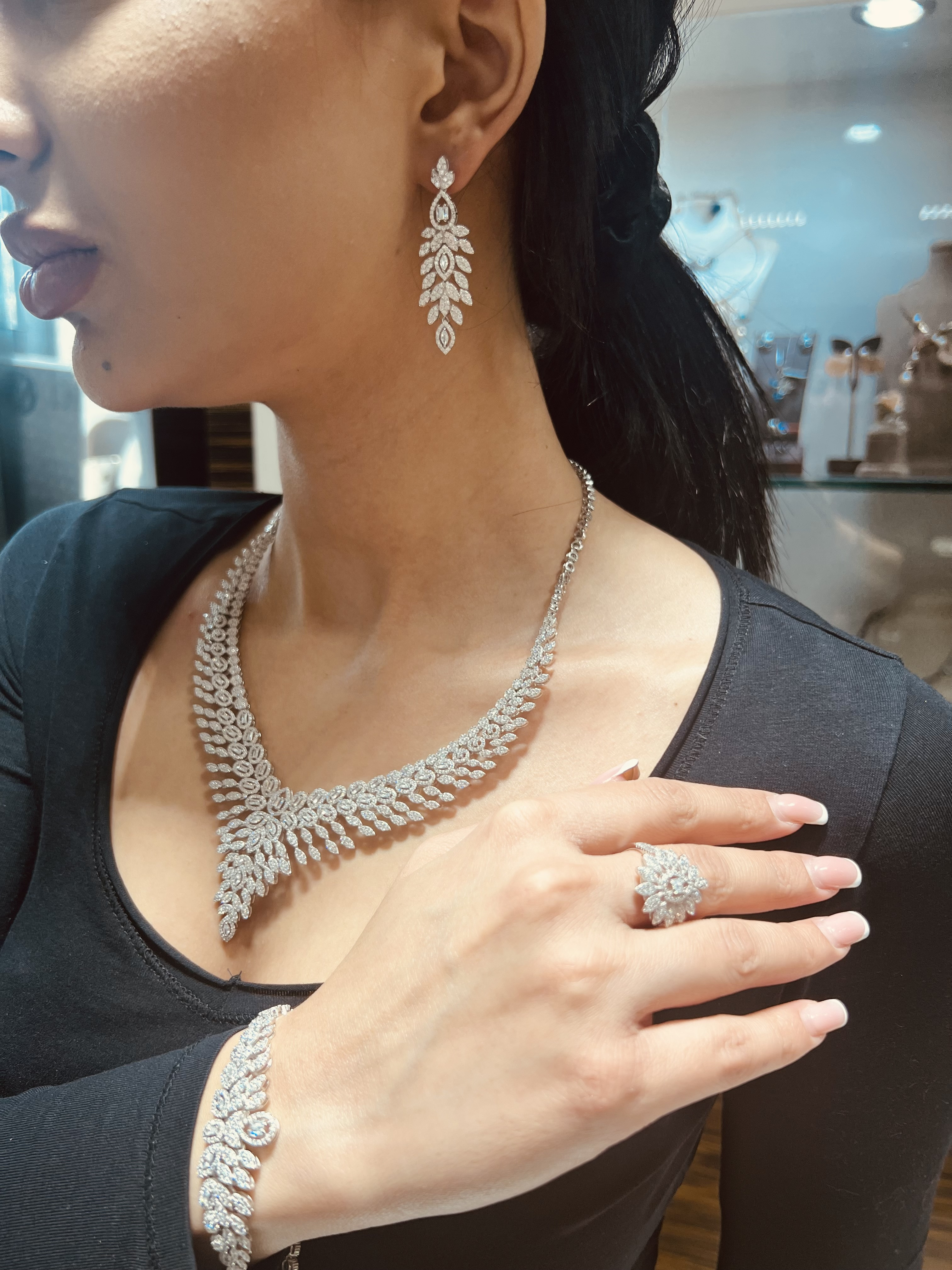 Комплект колие, обеци , пръстен и гривна от “Jacklin hugasian” в сребро със цирконии.