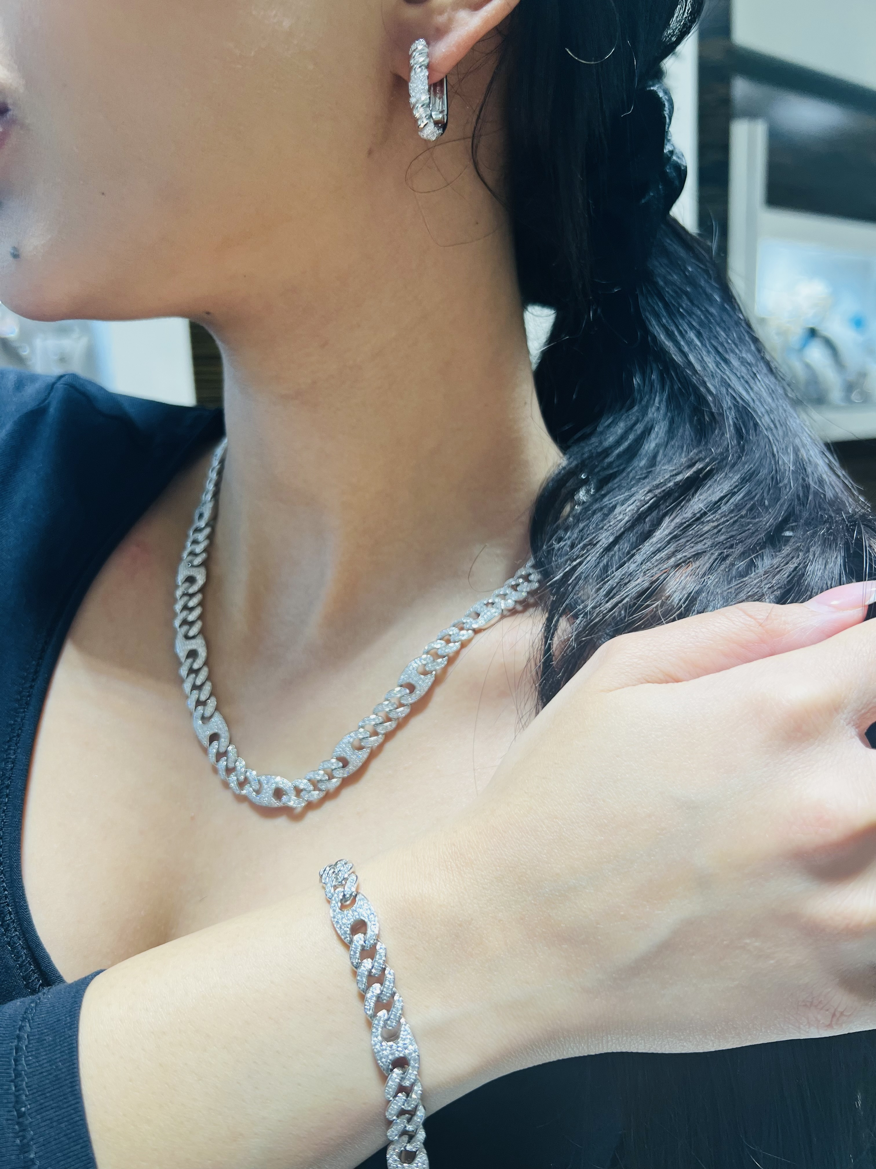 Комплект колие, обеци и гривна от “Jacklin hugasian” в сребро със цирконии.