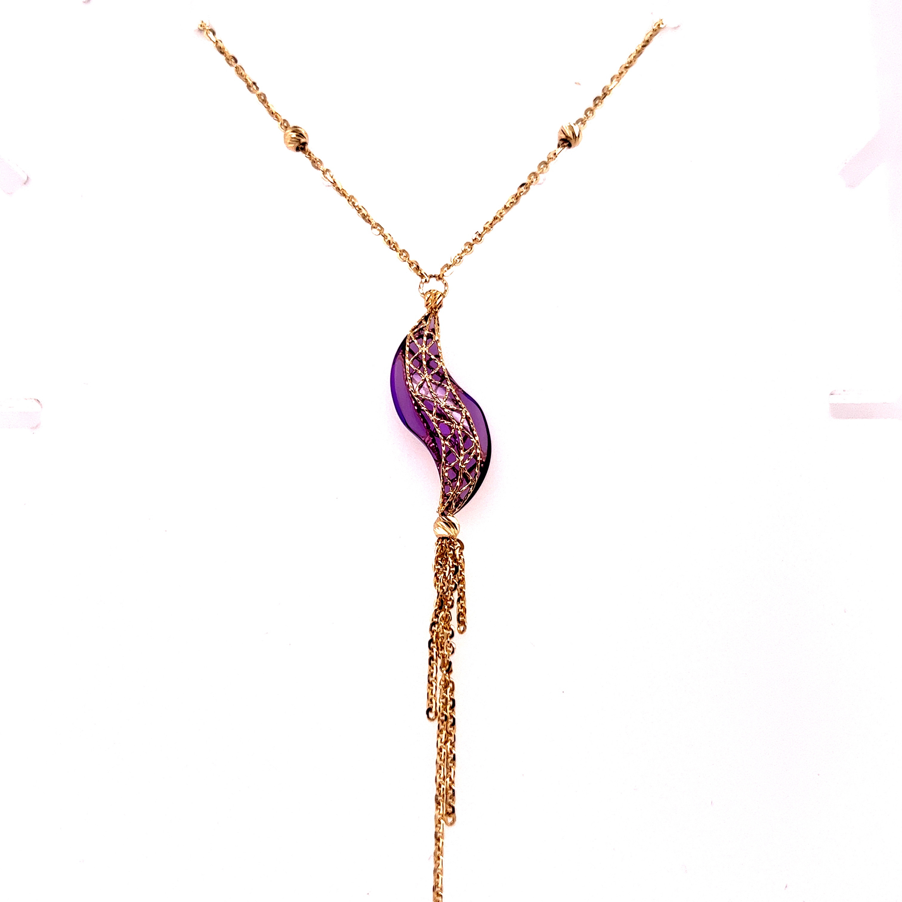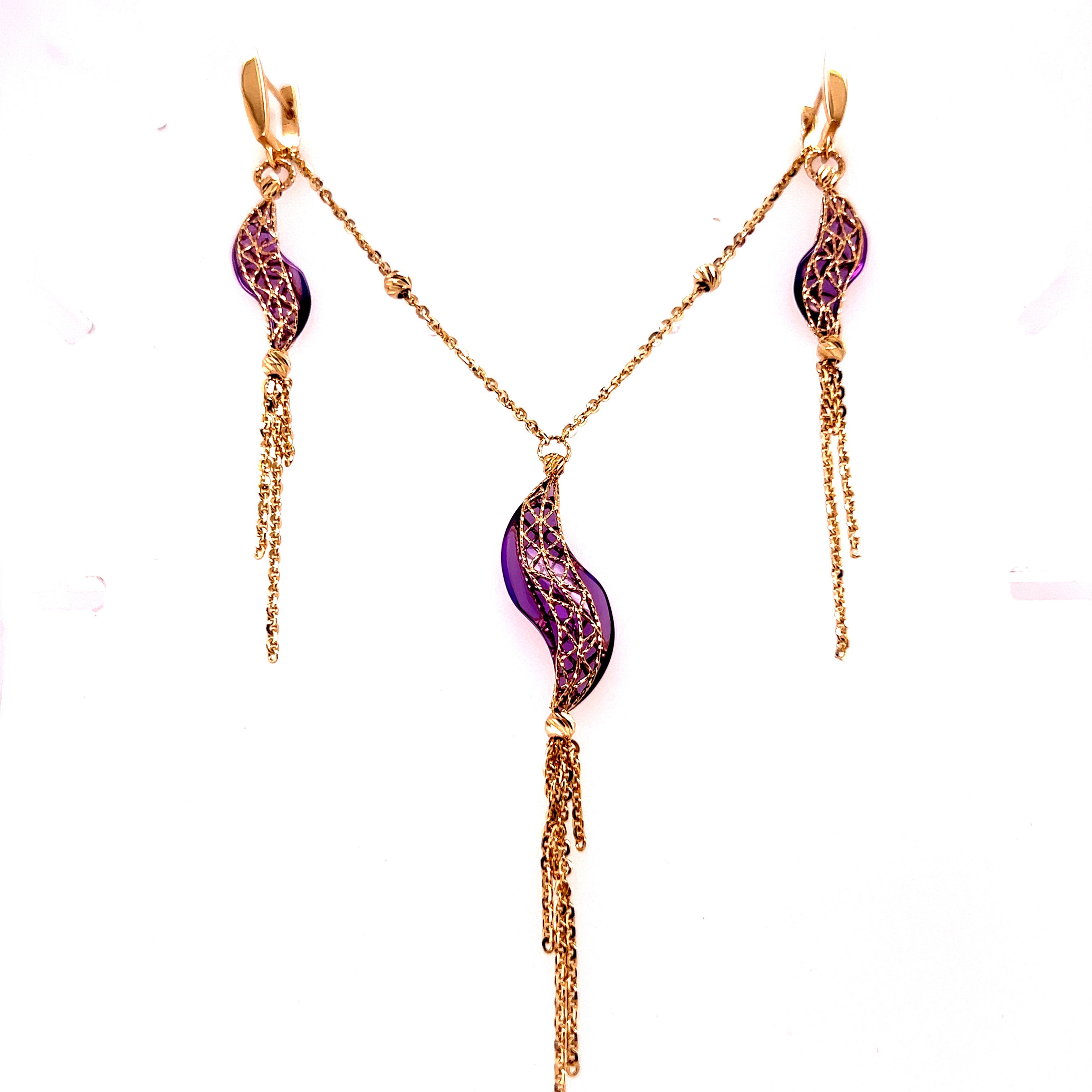 Комплект от “Jacklin hugasian” в жълто злато с аметист и лазерна шлифовка