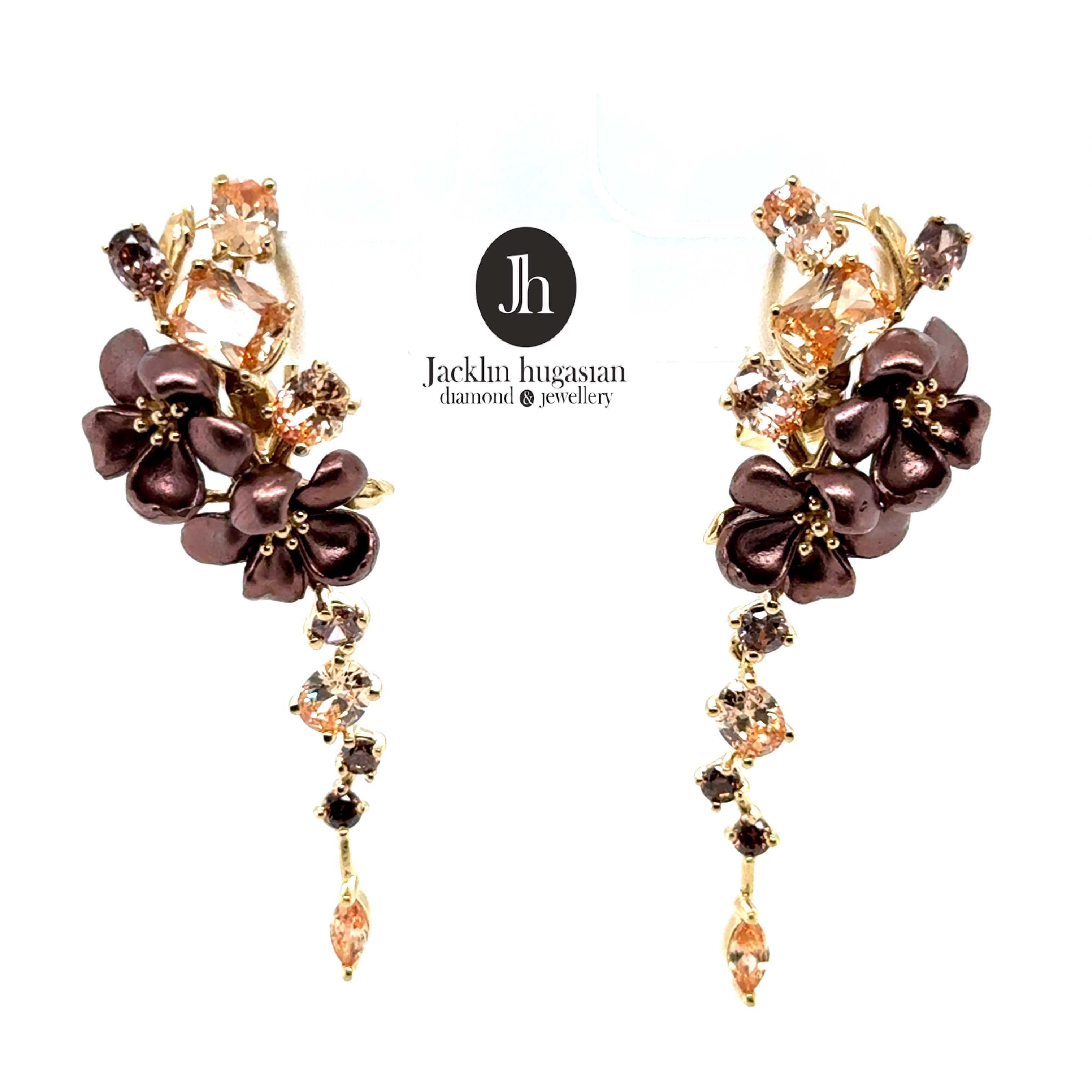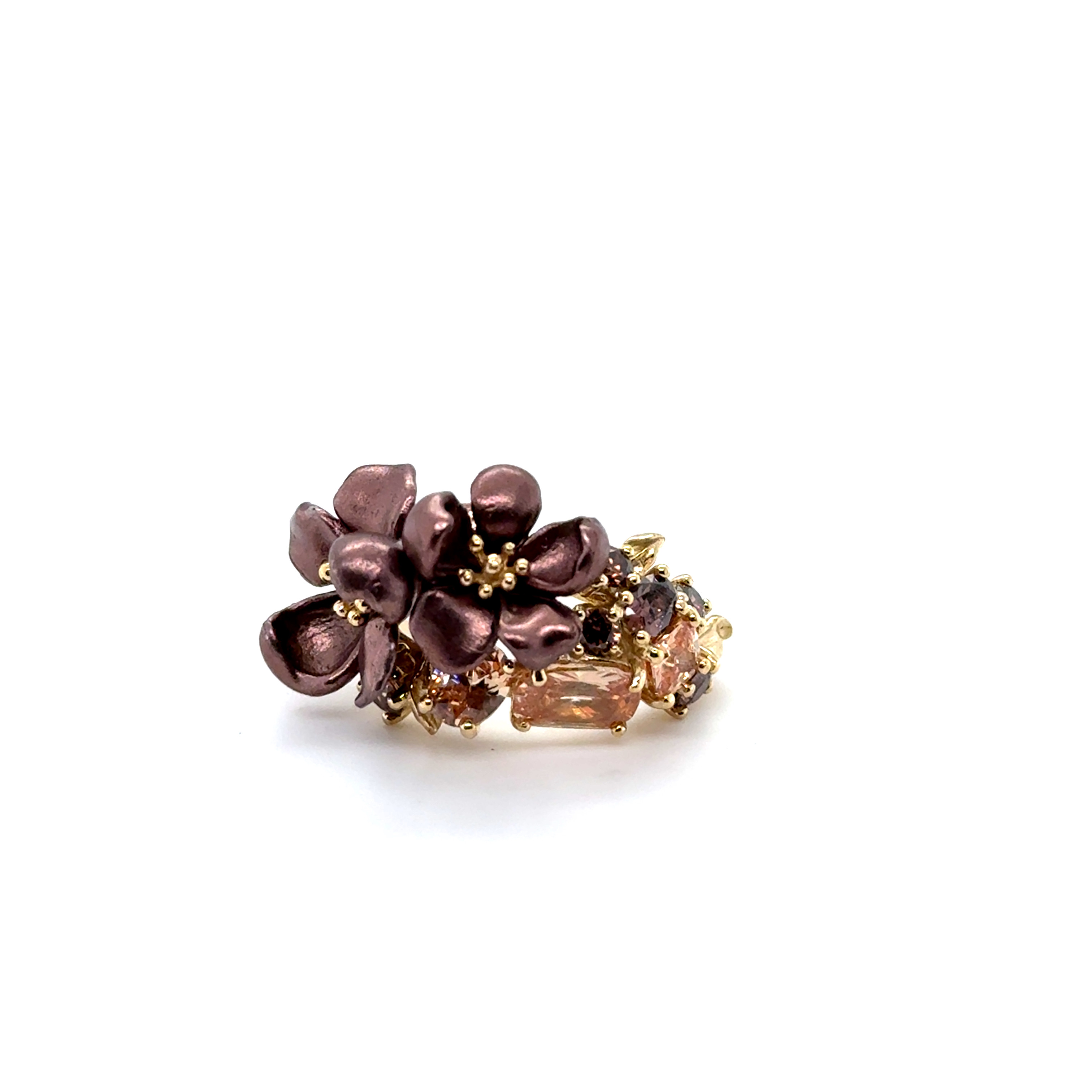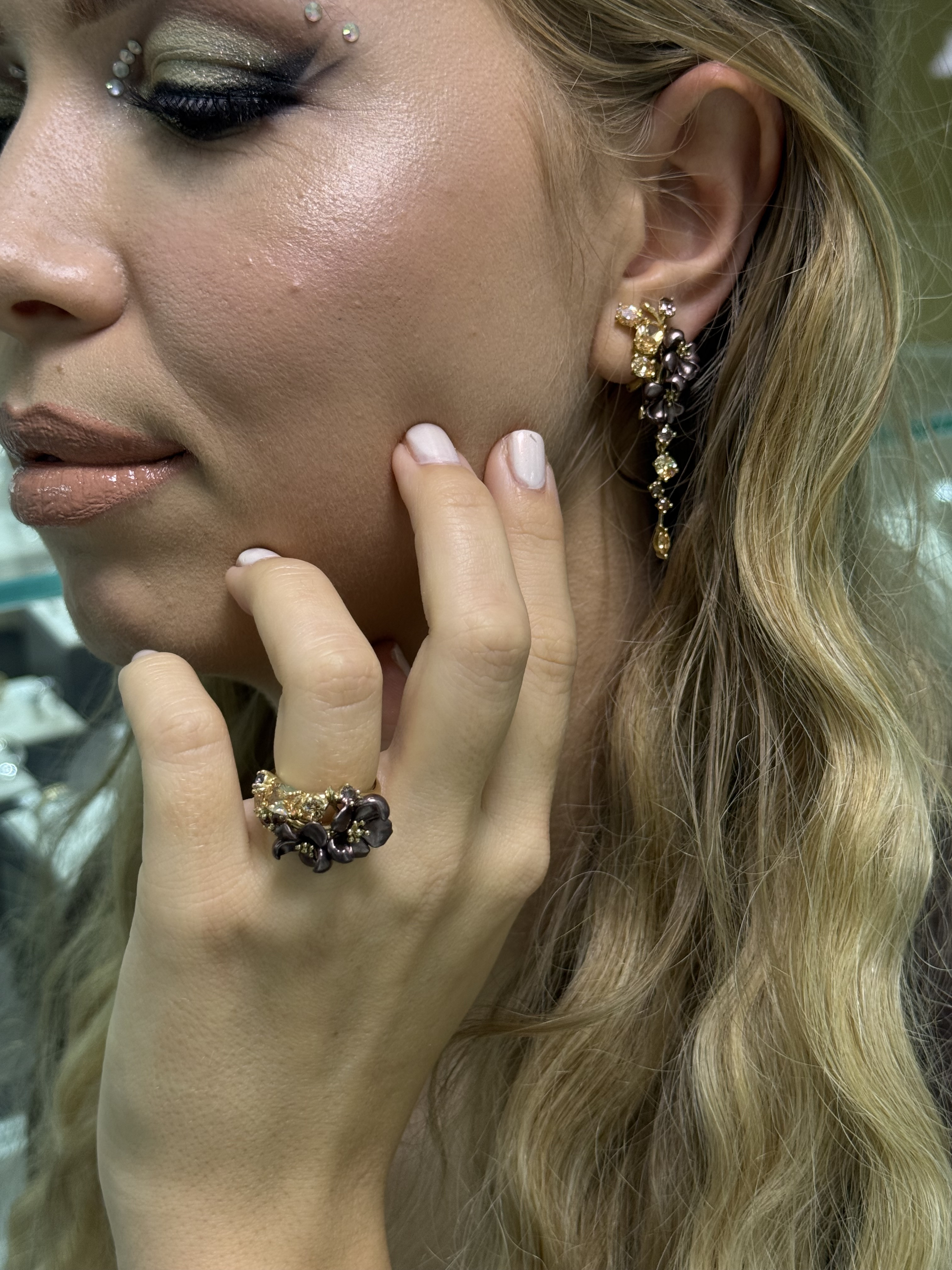 Комплект, обеци и пръстен от “Jacklin hugasian” в цветно сребро , позлата, опушен и златист топаз