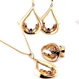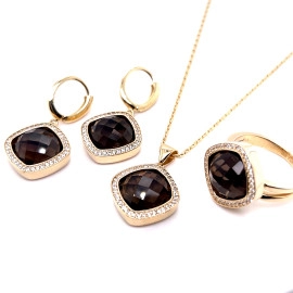 Комплект от “Jacklin hugasian” в жълто злато с опушен топаз и циркони.