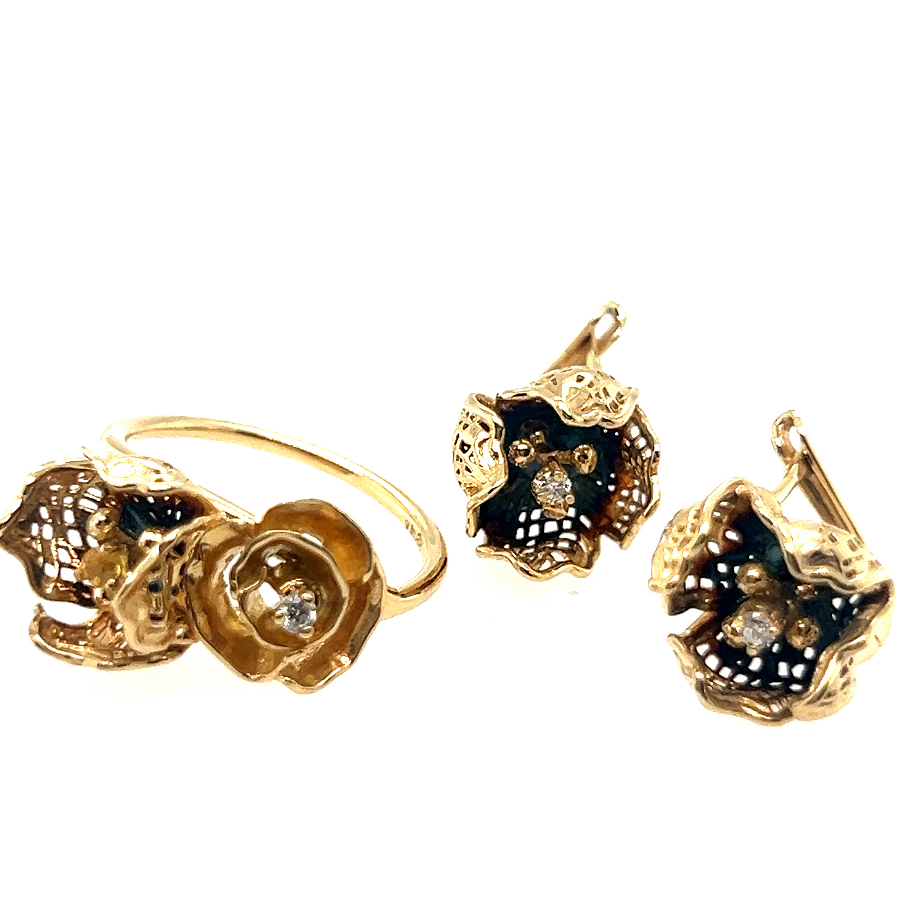 Комплект от “Jacklin hugasian” в жълто злато с диаманти.