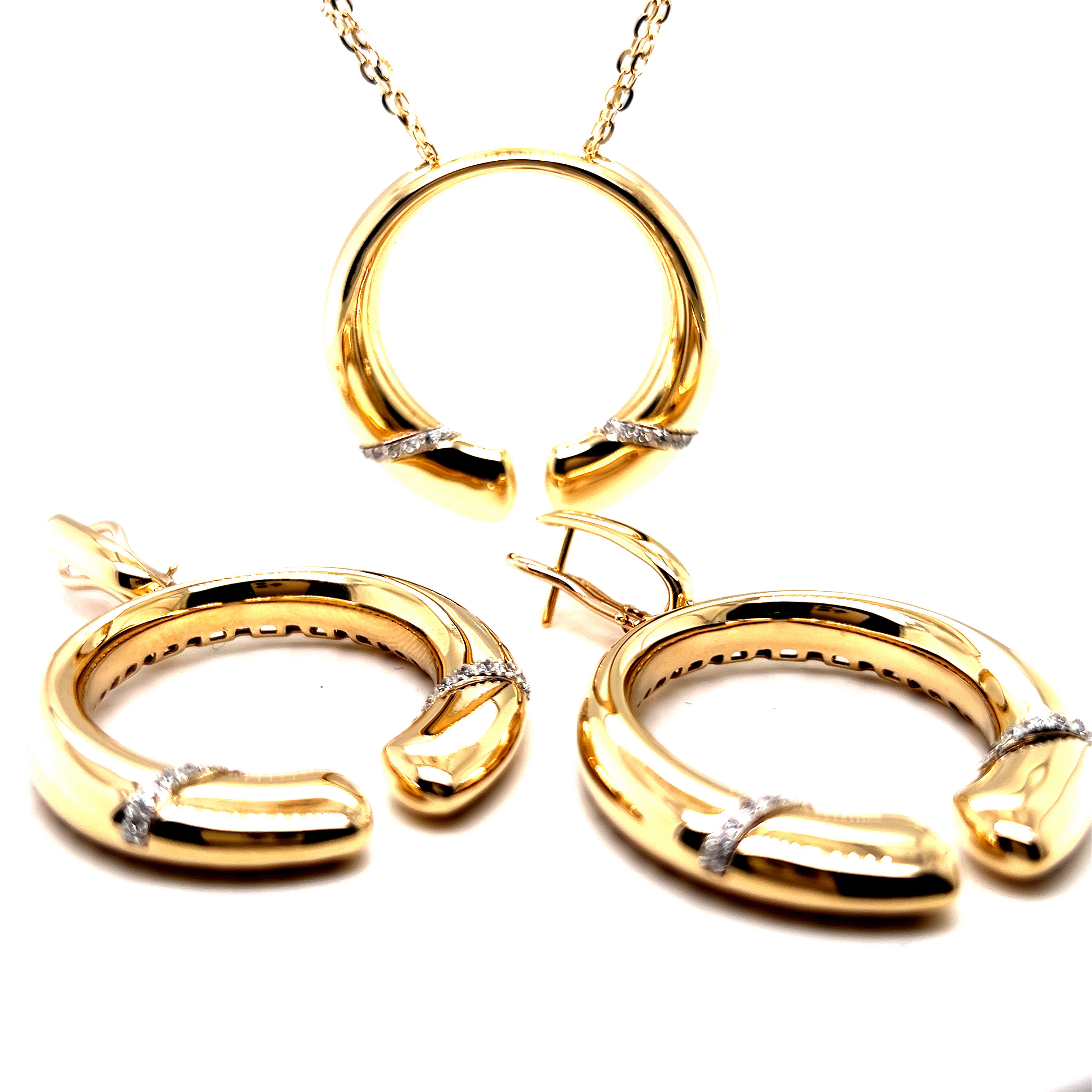 Обеци от “Jacklin hugasian” в жълто злато гланц , с циркони.