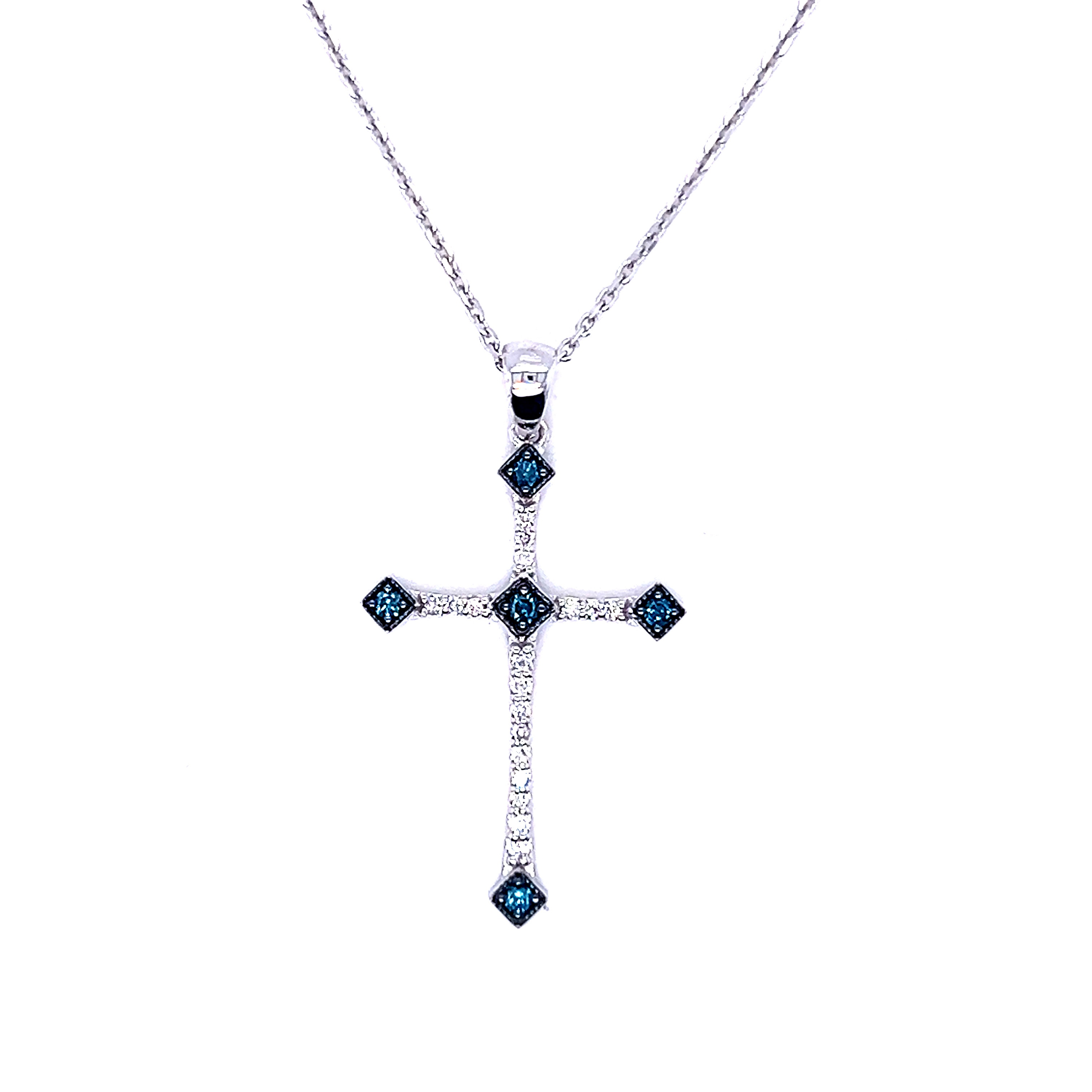 Колие от "Jacklin hugasian" в бяло злато, с бели и сини диаманти.
