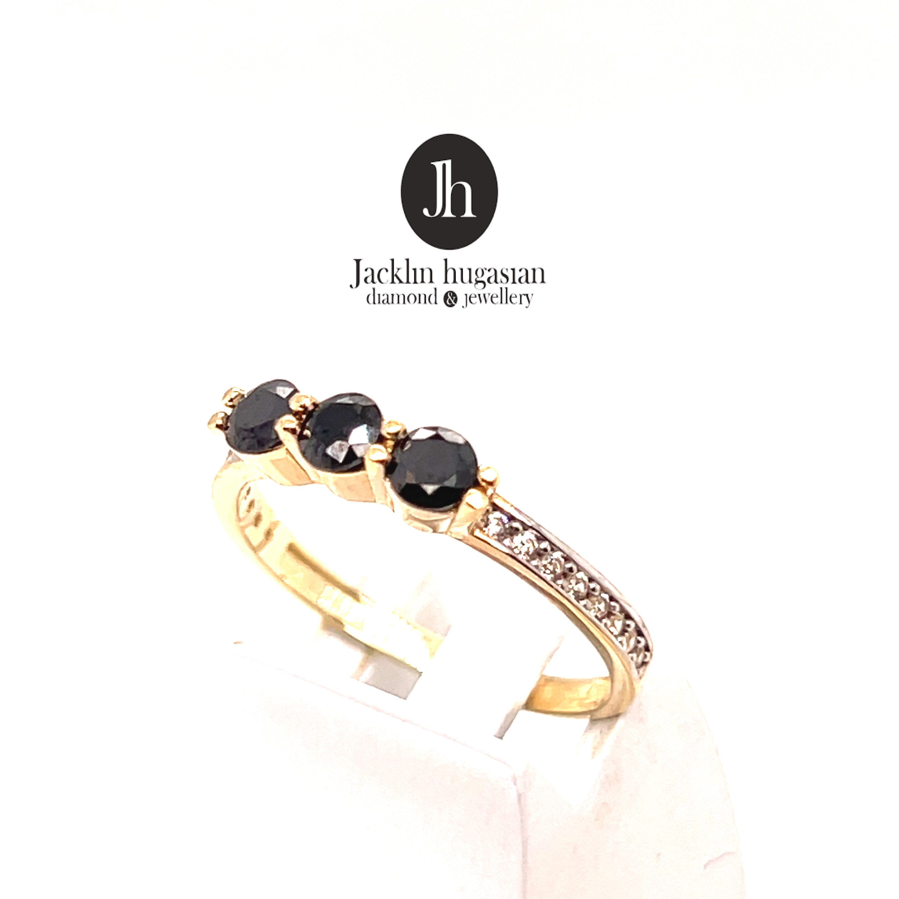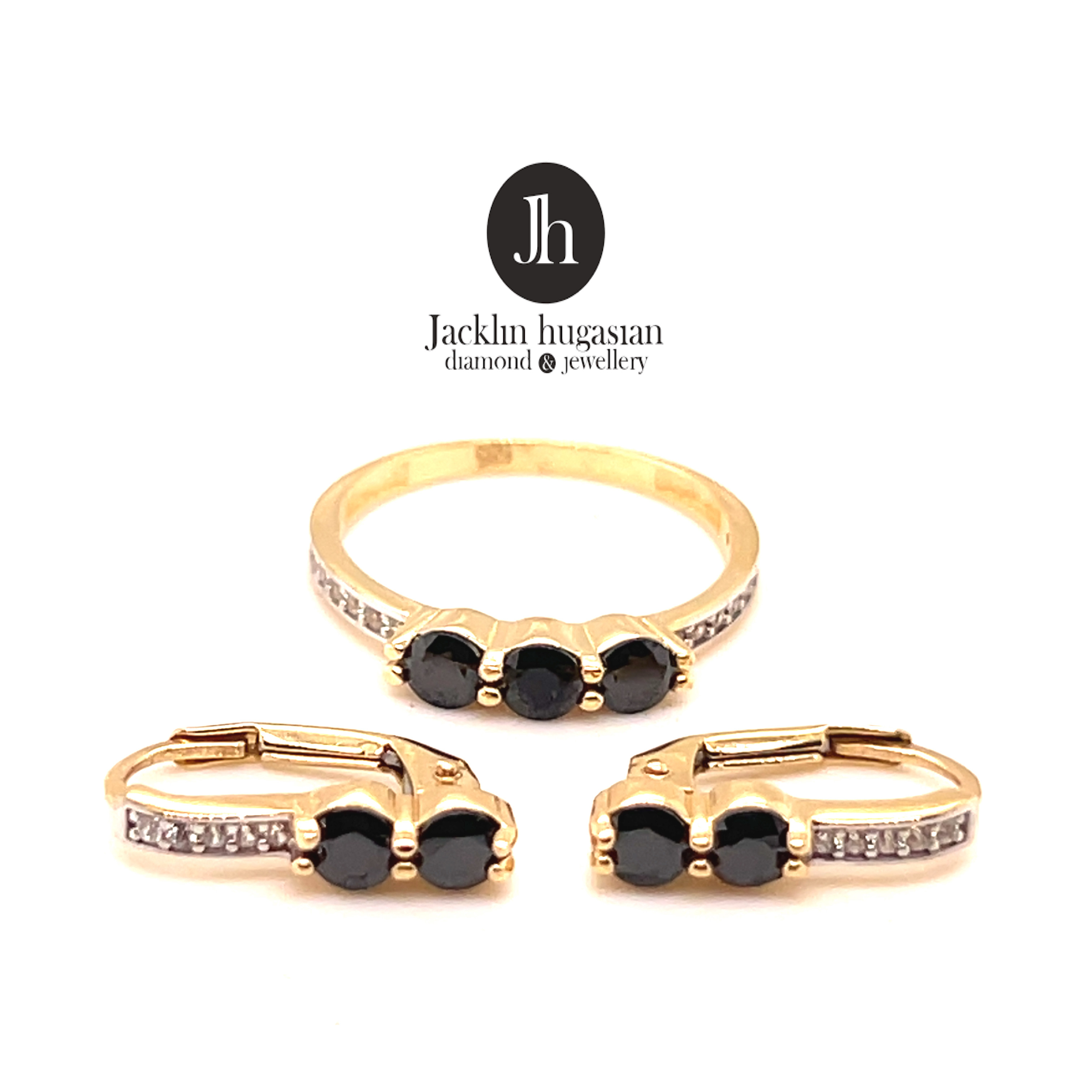 Комплект обеци и пръстен от “Jacklin hugasian” в жълто злато с оникс и циркони