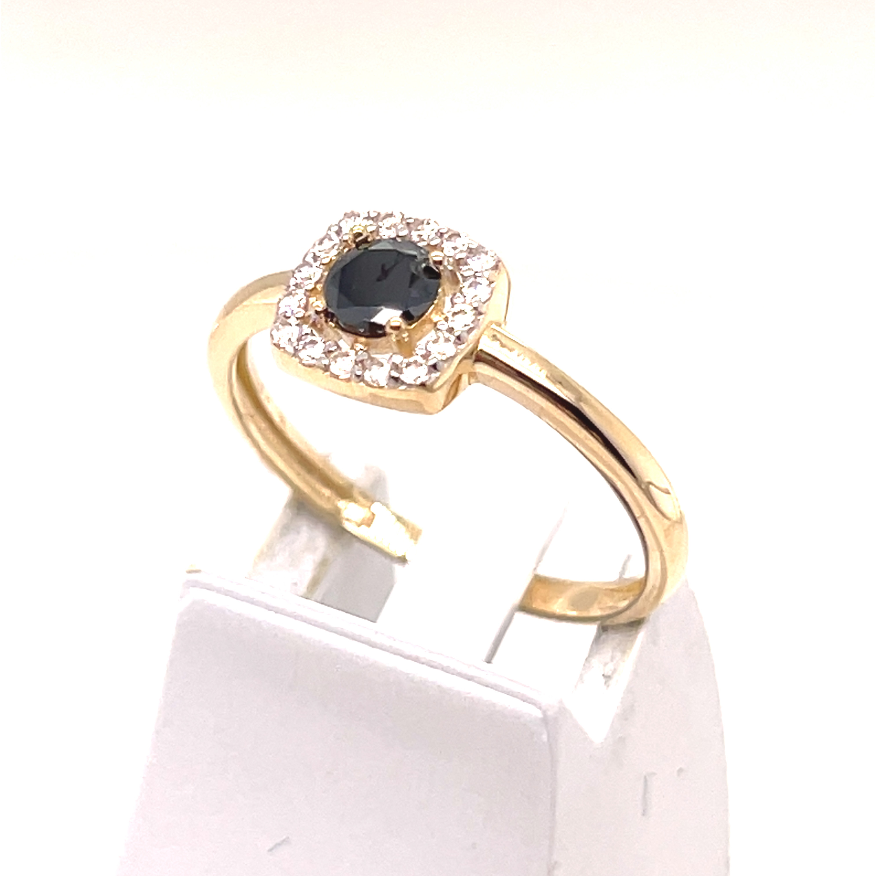 Комплект обеци и пръстен от “Jacklin hugasian” в жълто злато с оникс и циркони