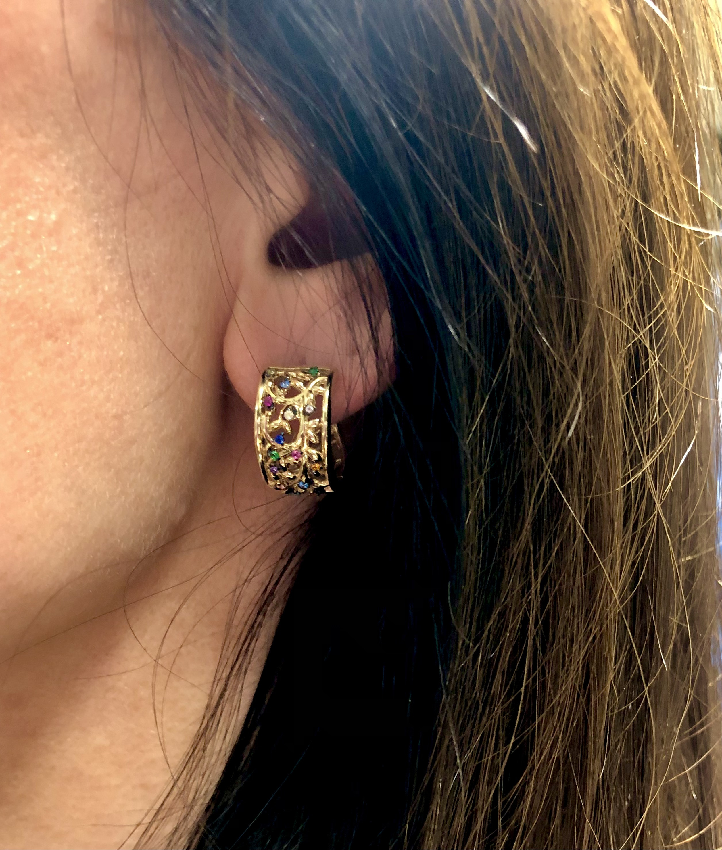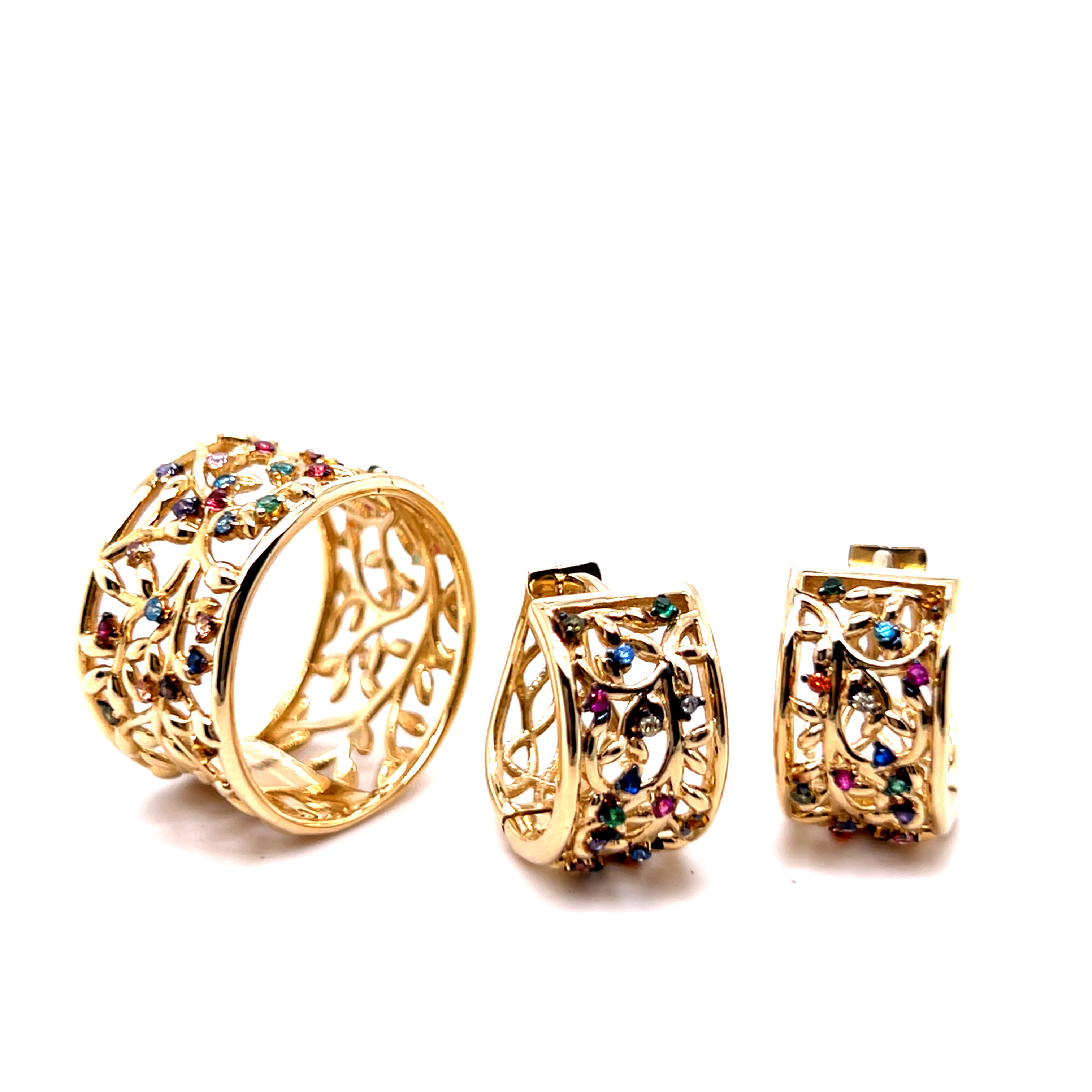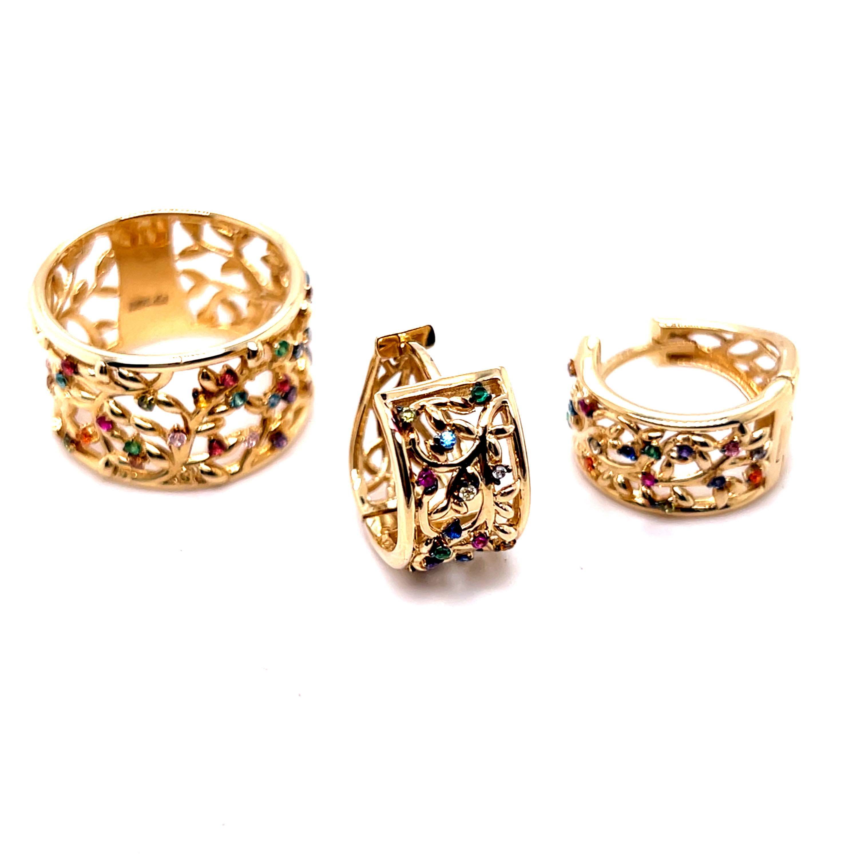 Комплект от “Jacklin hugasian” в жълто злато с разноцветни камъни