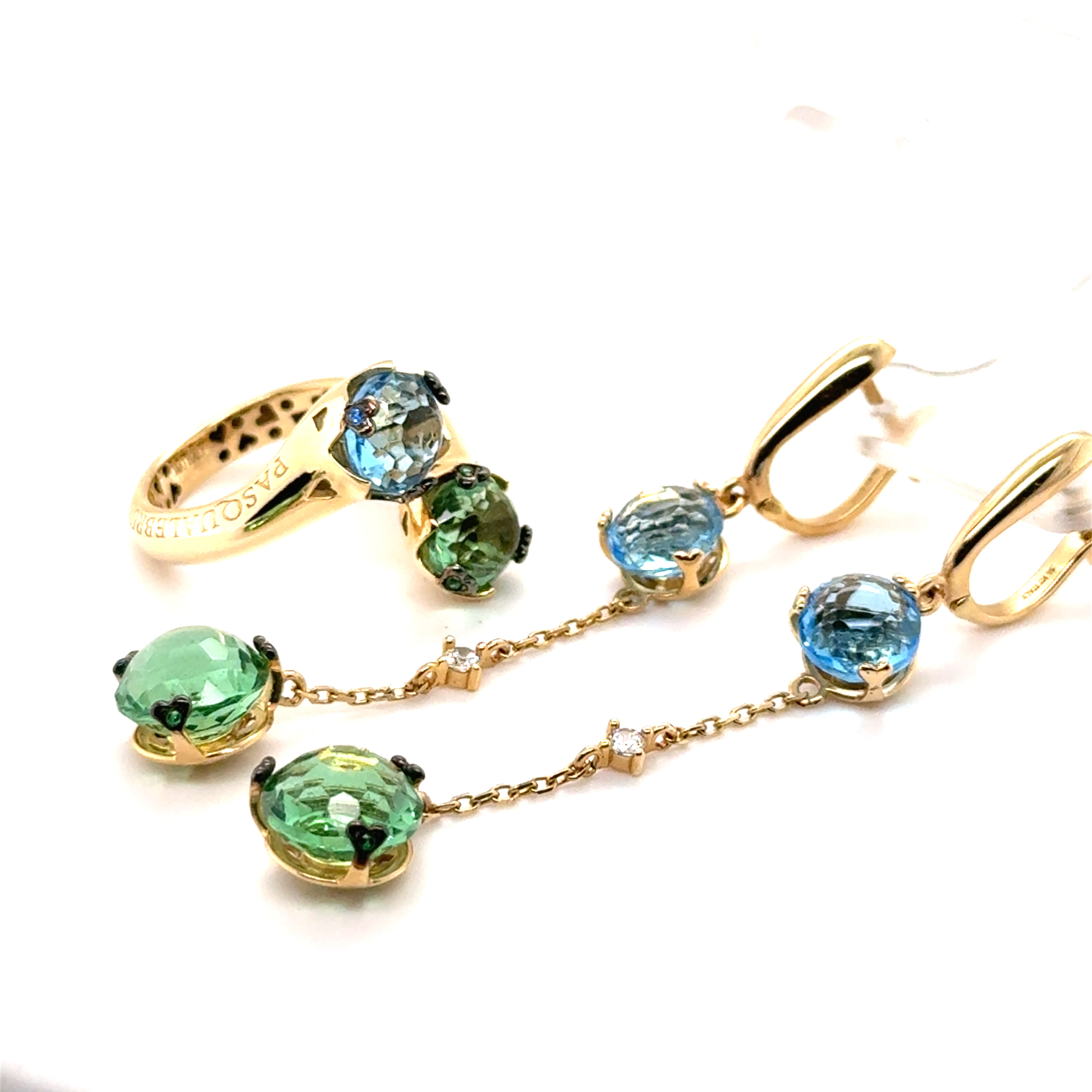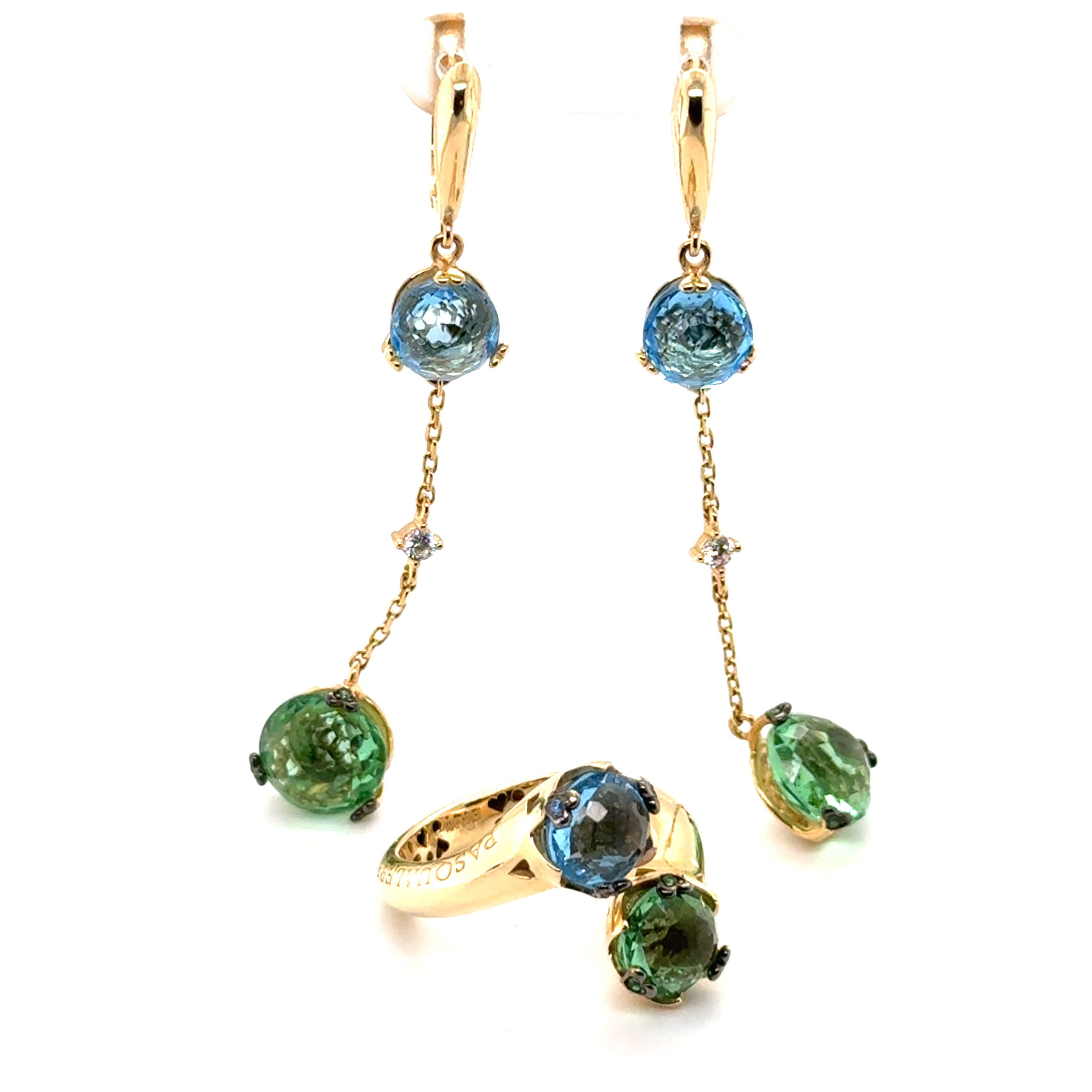 Комплект обеци и гривна от “Jacklin hugasian” в жълто злато с перидот, цитрин и зелен хематит