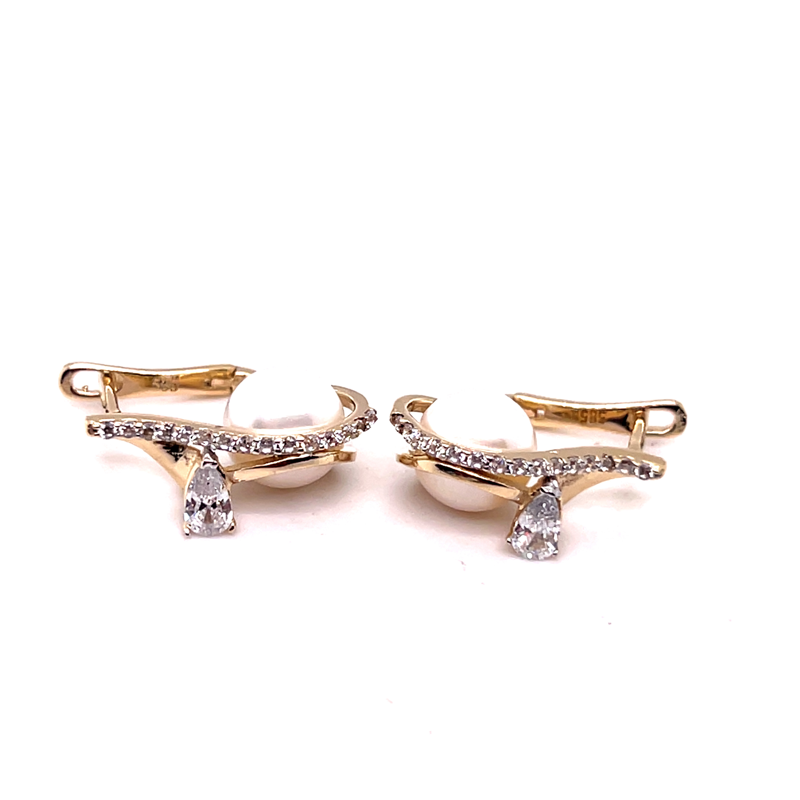 Комплект от “Jacklin hugasian” в жълто злато с перла и циркони.