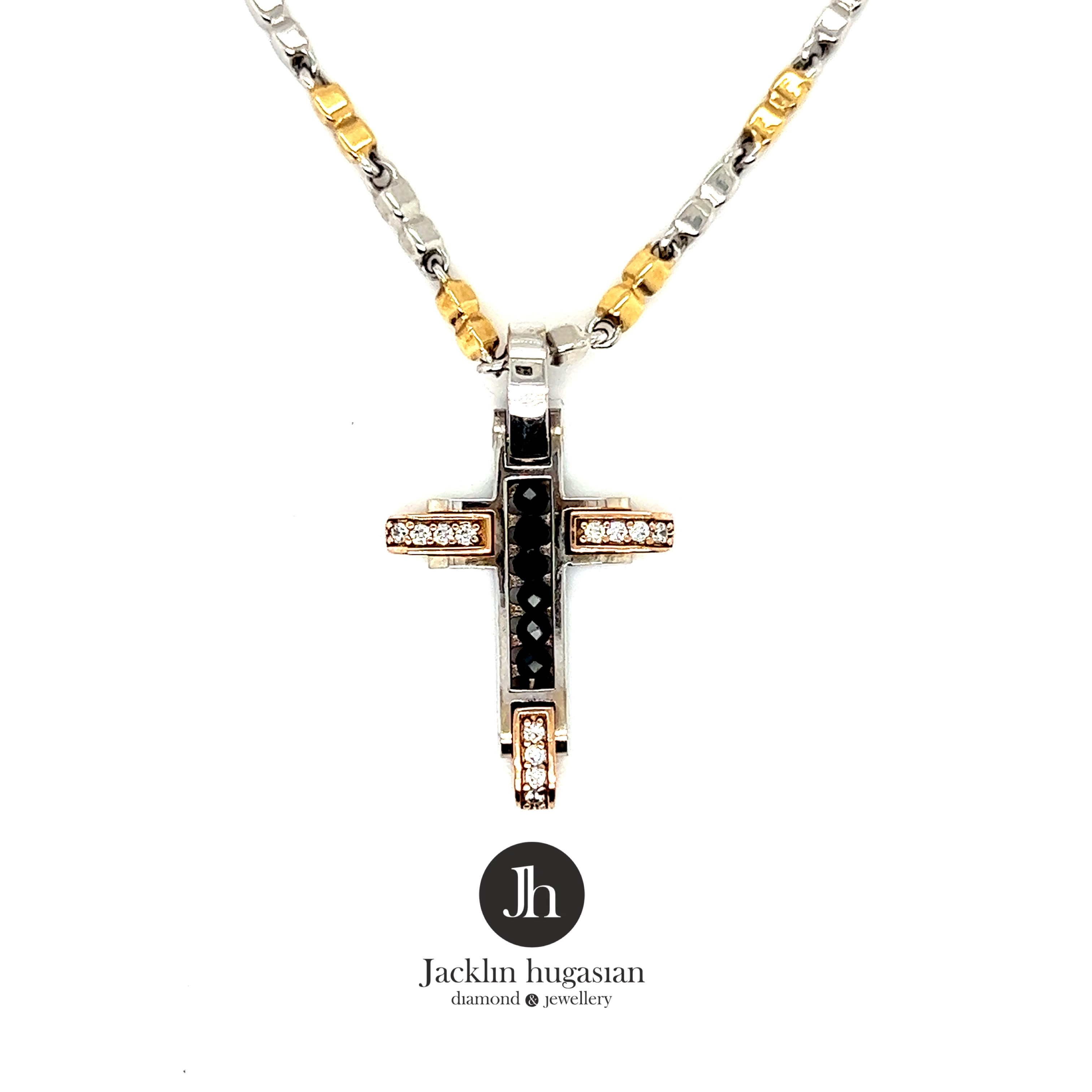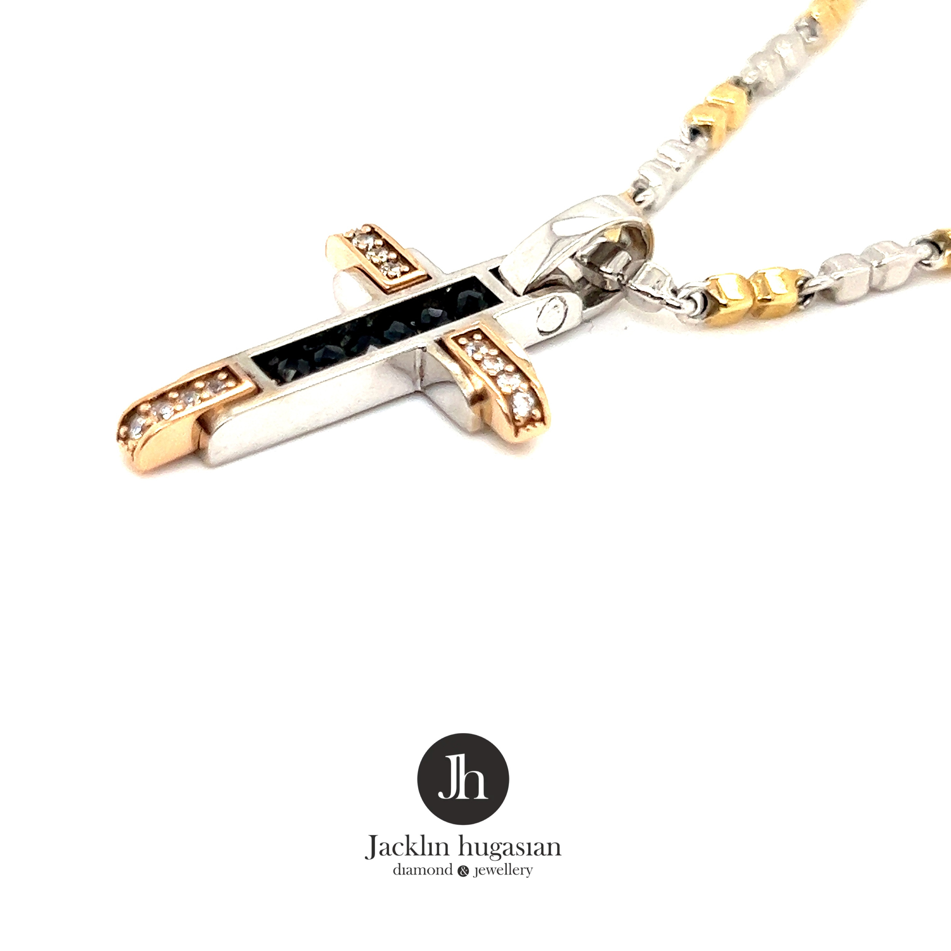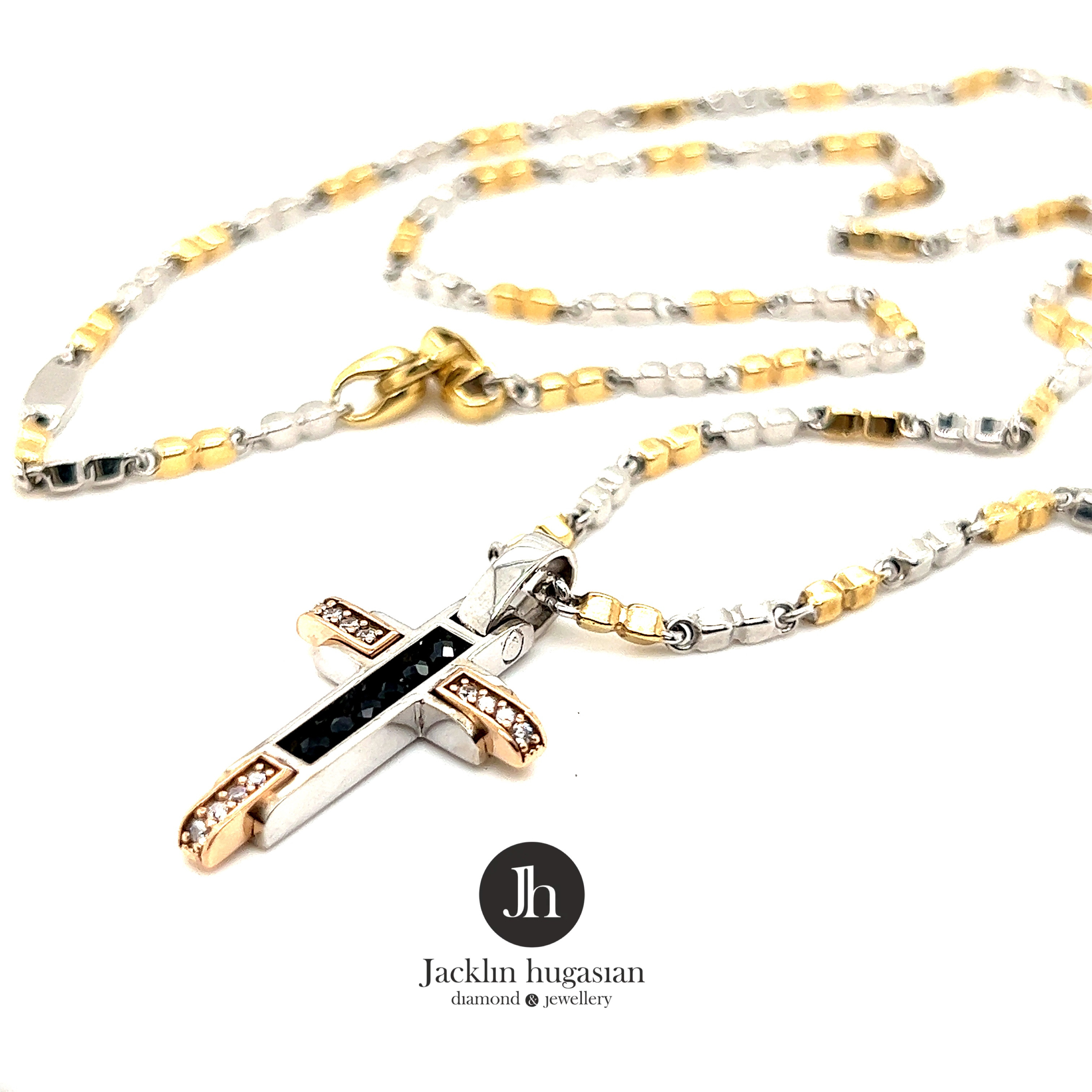 Висулка от " Jacklin hugasian " в жълто,бяло и розово злато с оникс и циркони. .
