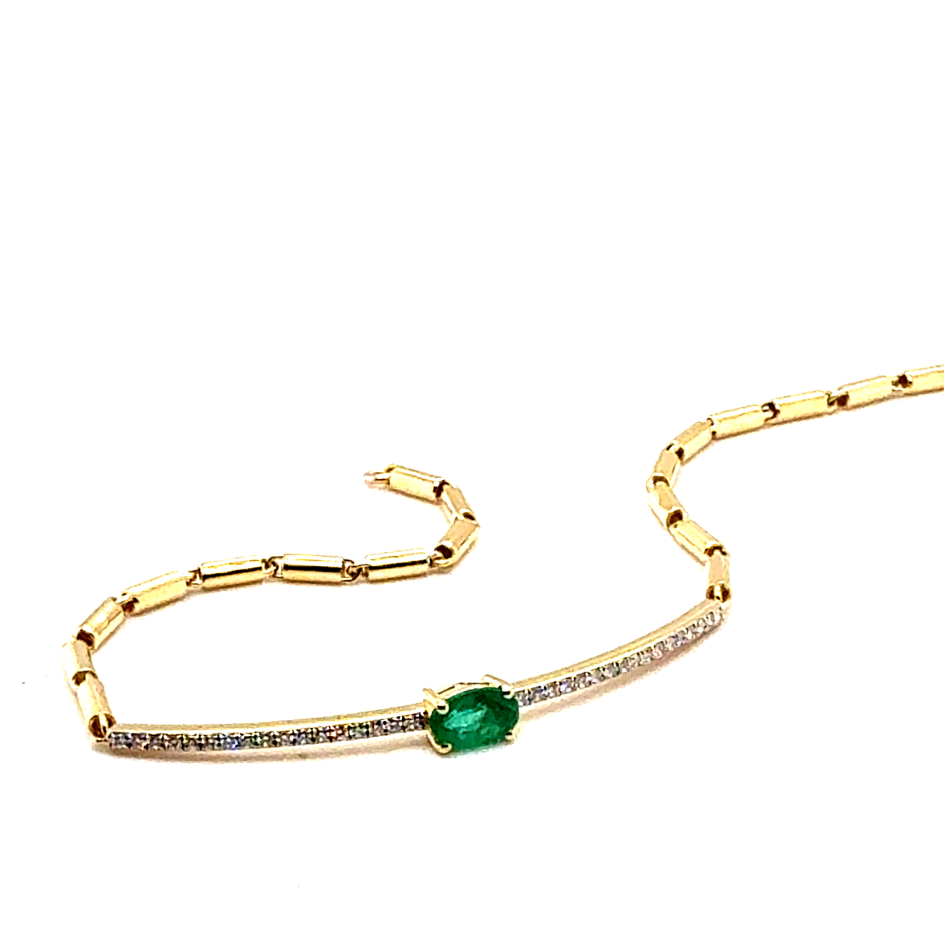 Гривна от "Jacklin hugasian" в жълто злато с естествен изумруд и диаманти.