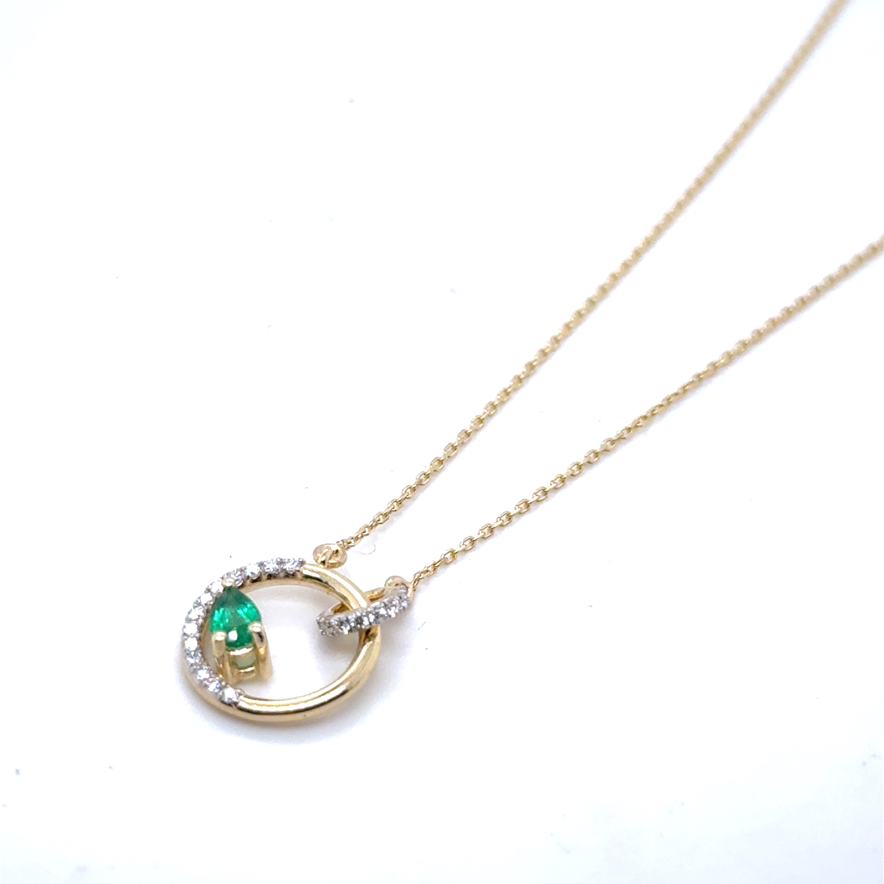 Колие от “Jacklin hugasian” в жълто злато с диаманти и изумруд.