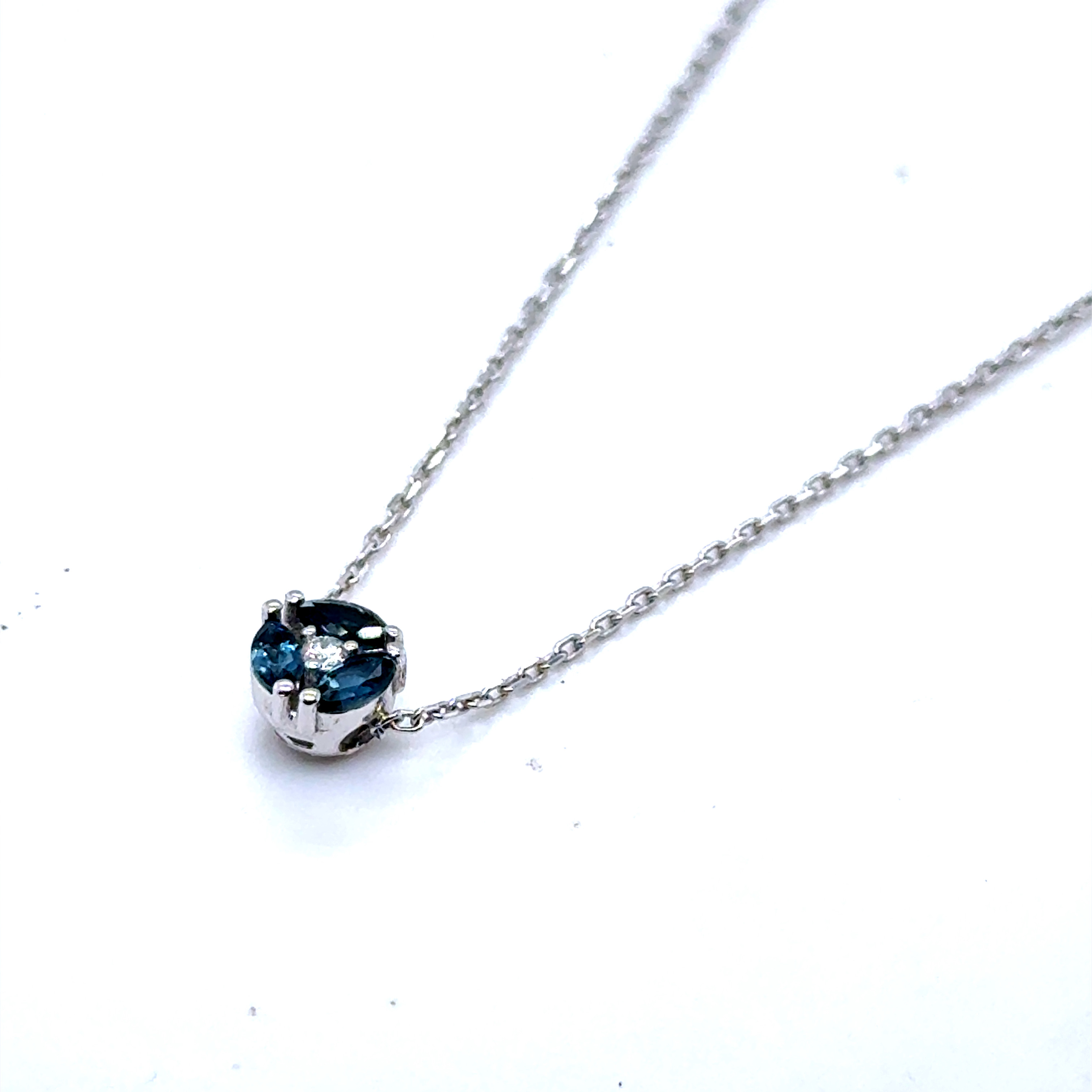 Колие от "Jacklin hugasian" в бяло злато с диамант и Лондон топаз.