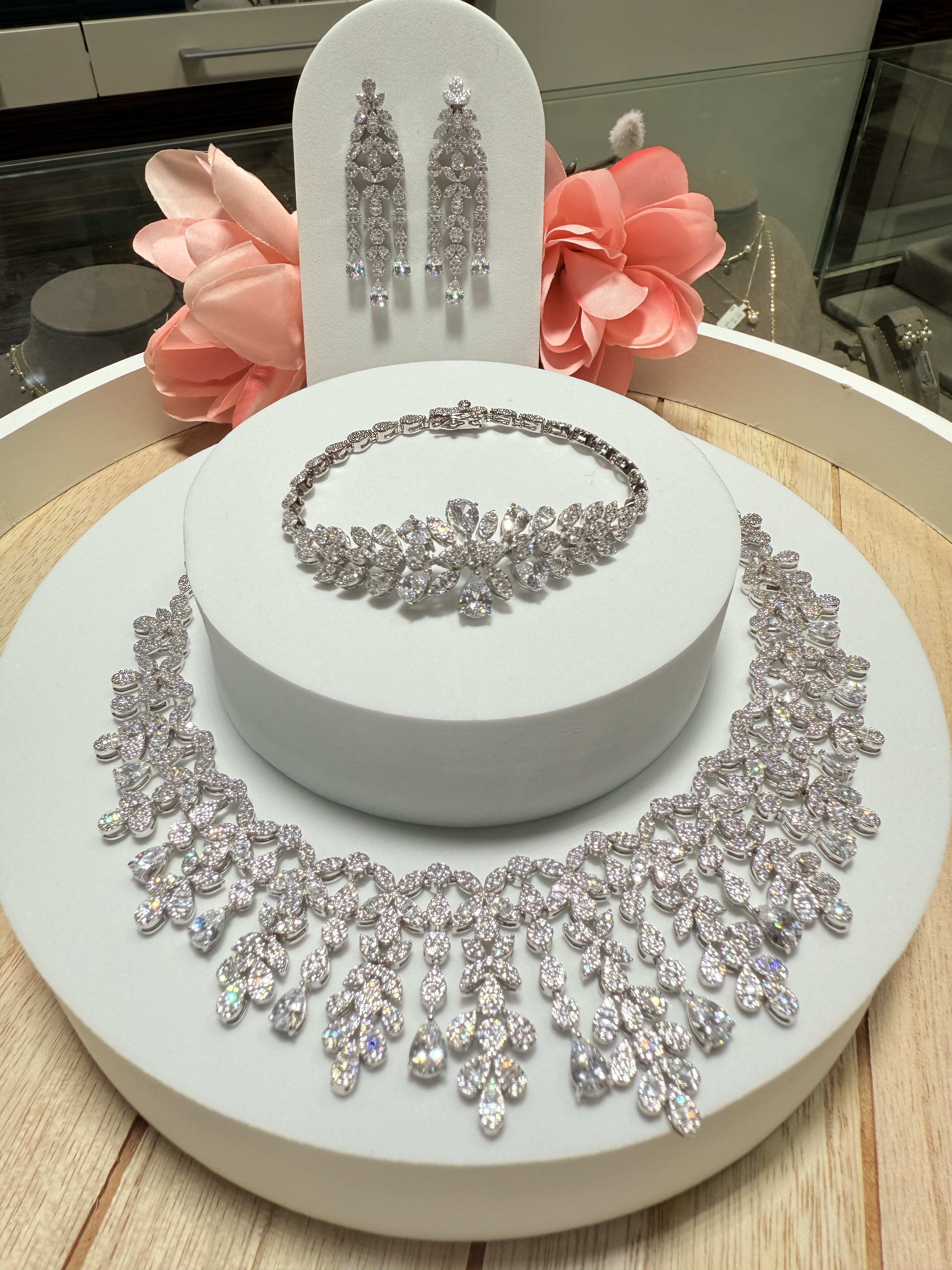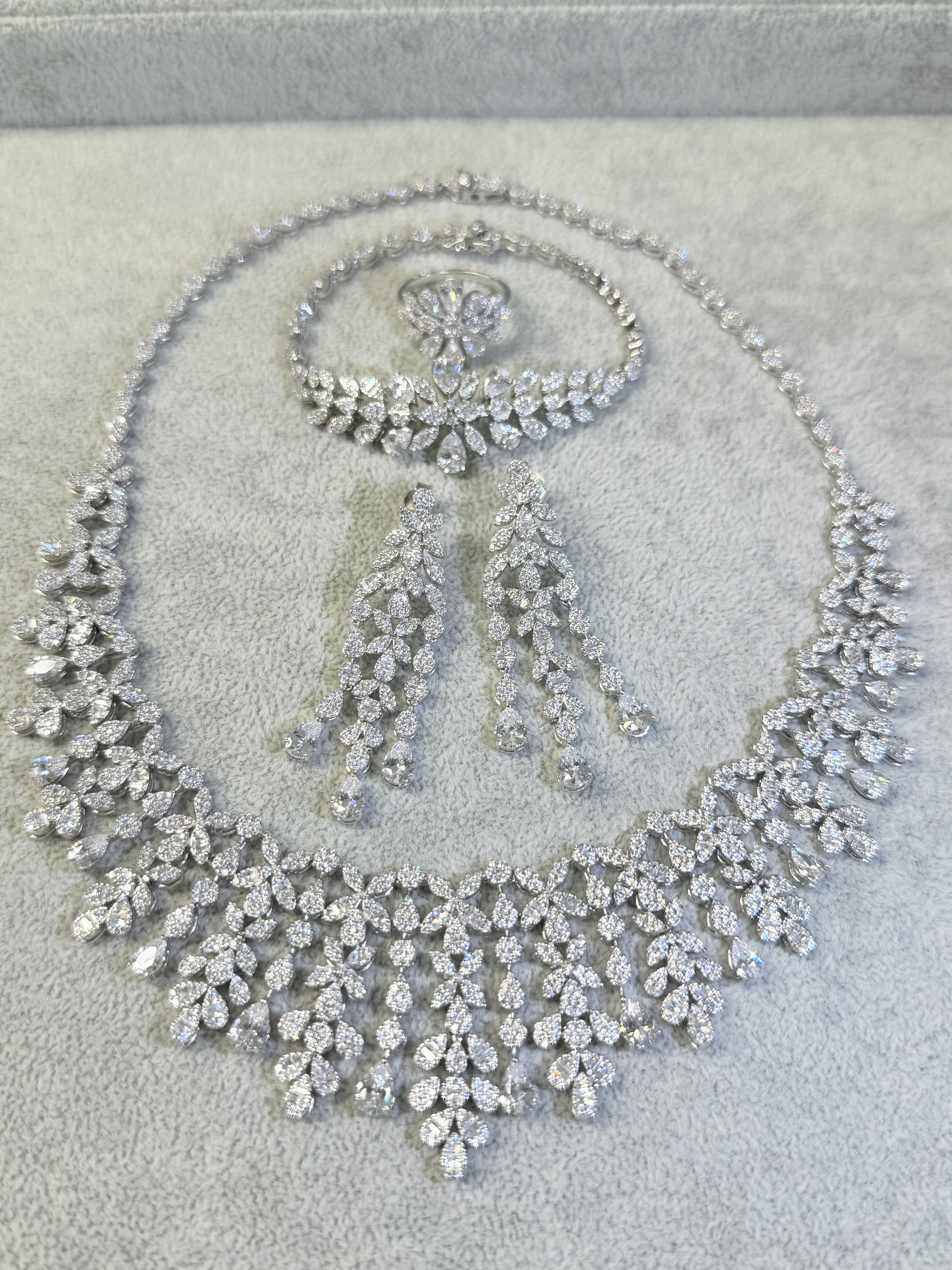 Комплект колие, обеци , пръстен и гривна от “Jacklin hugasian” в сребро с цирконии.