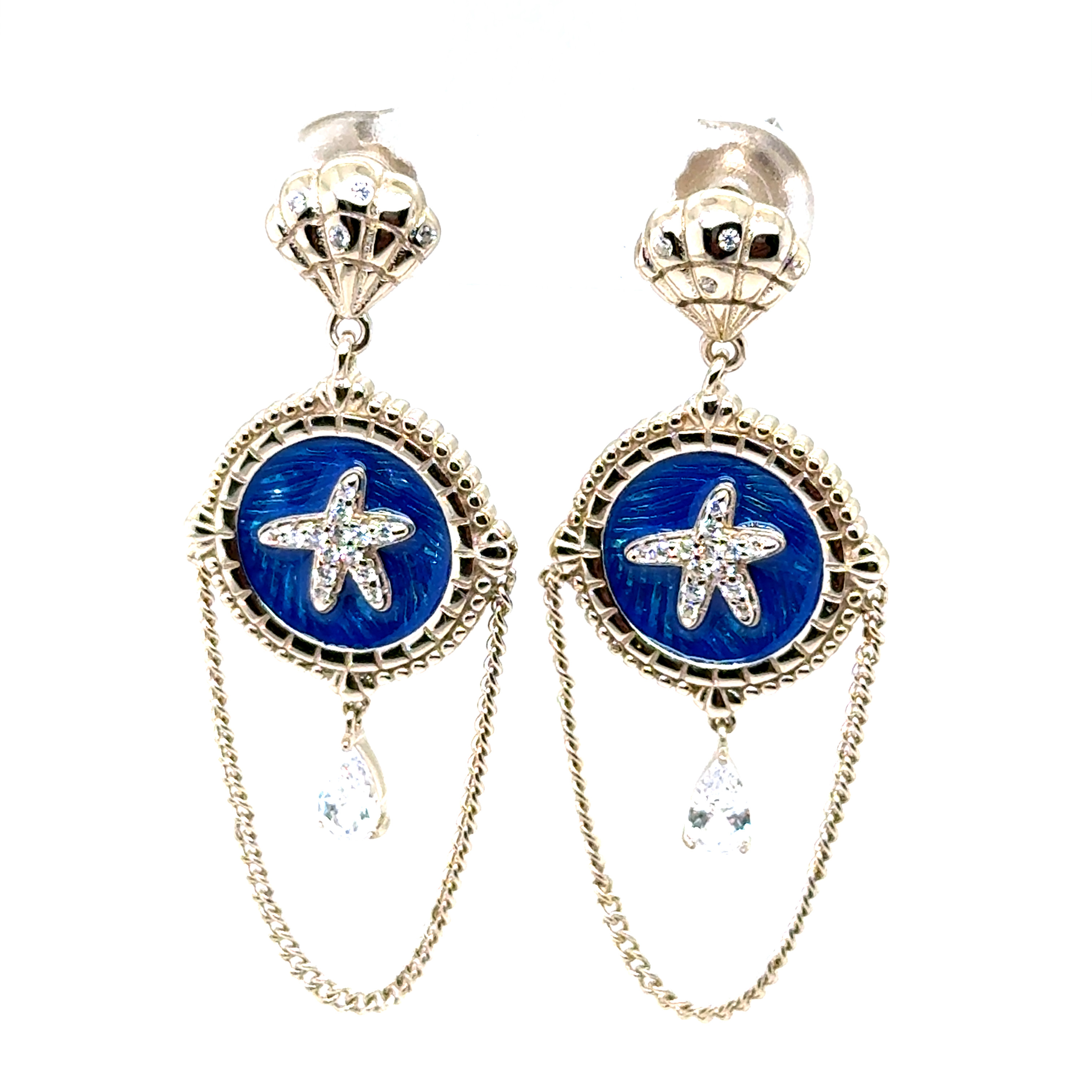 Обеци от "Jacklin hugasian" в сребро с позлата,циркони,емайл.