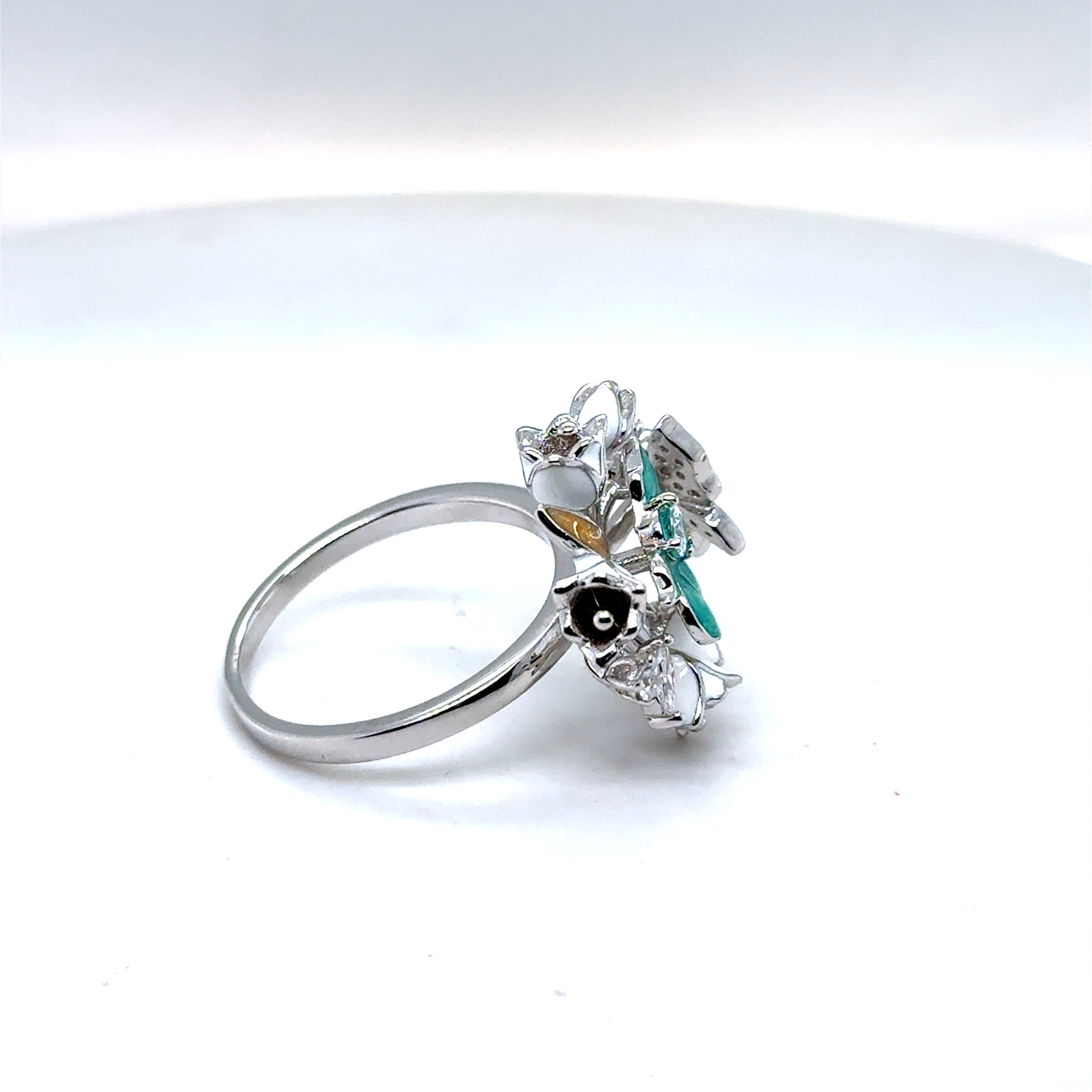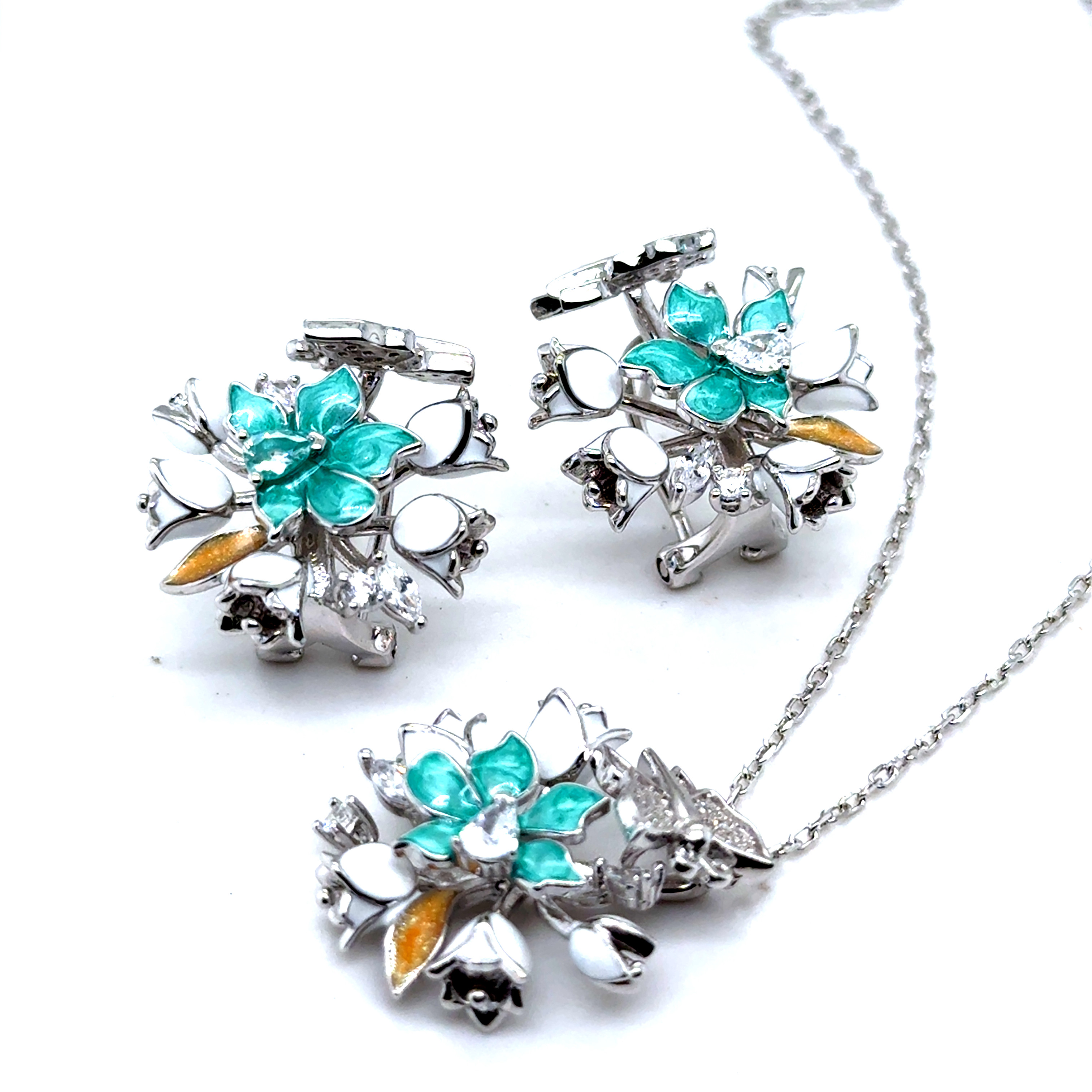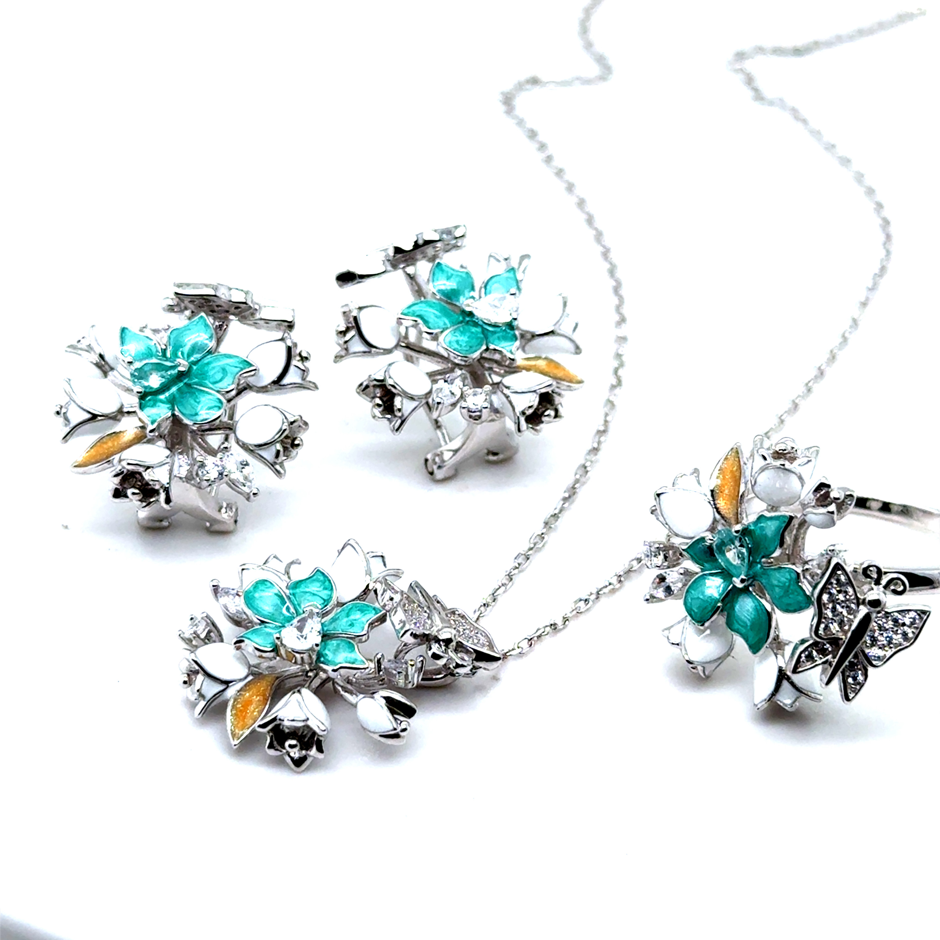 Комплект колие, обеци и пръстен от “Jacklin hugasian” в сребро с емайл и циркони.