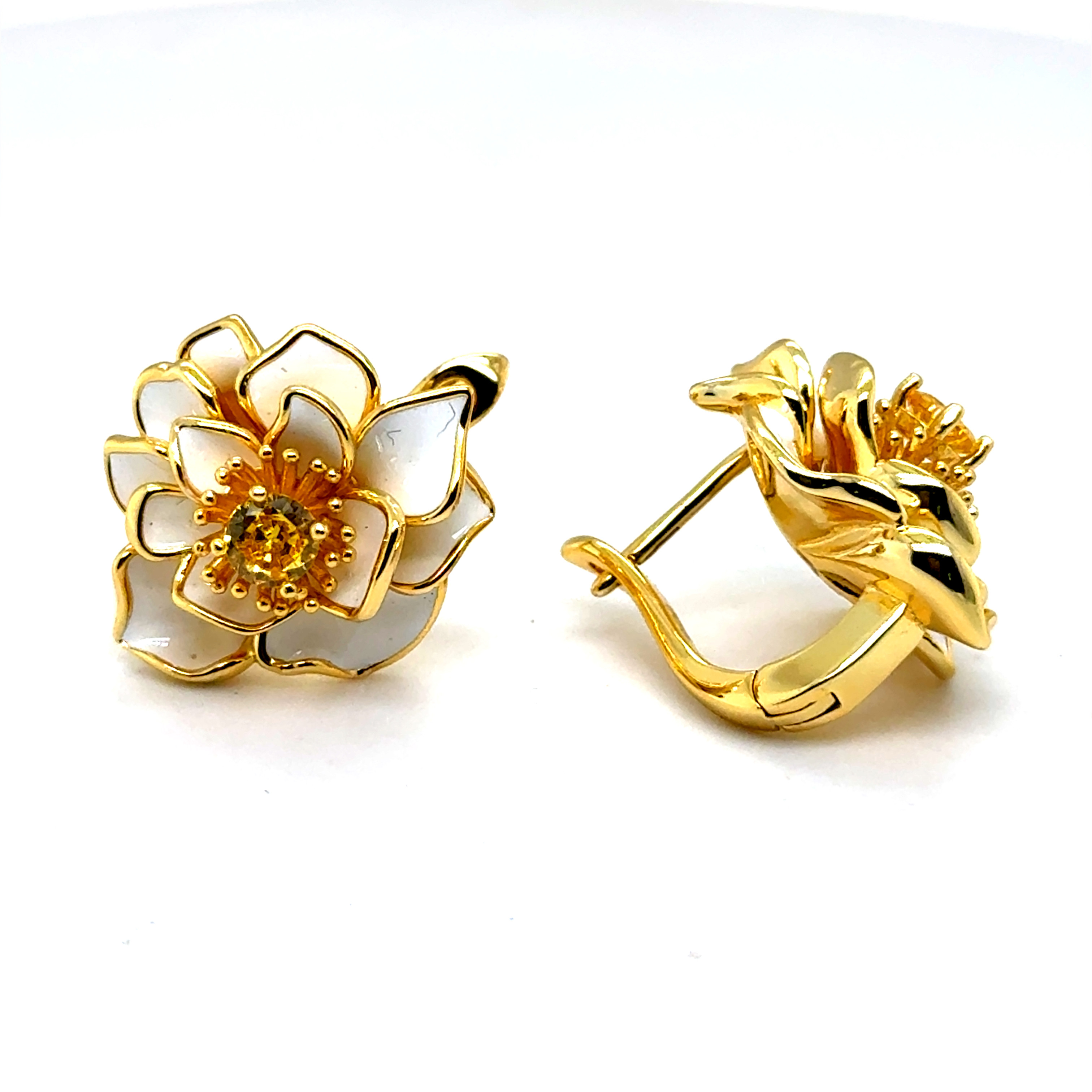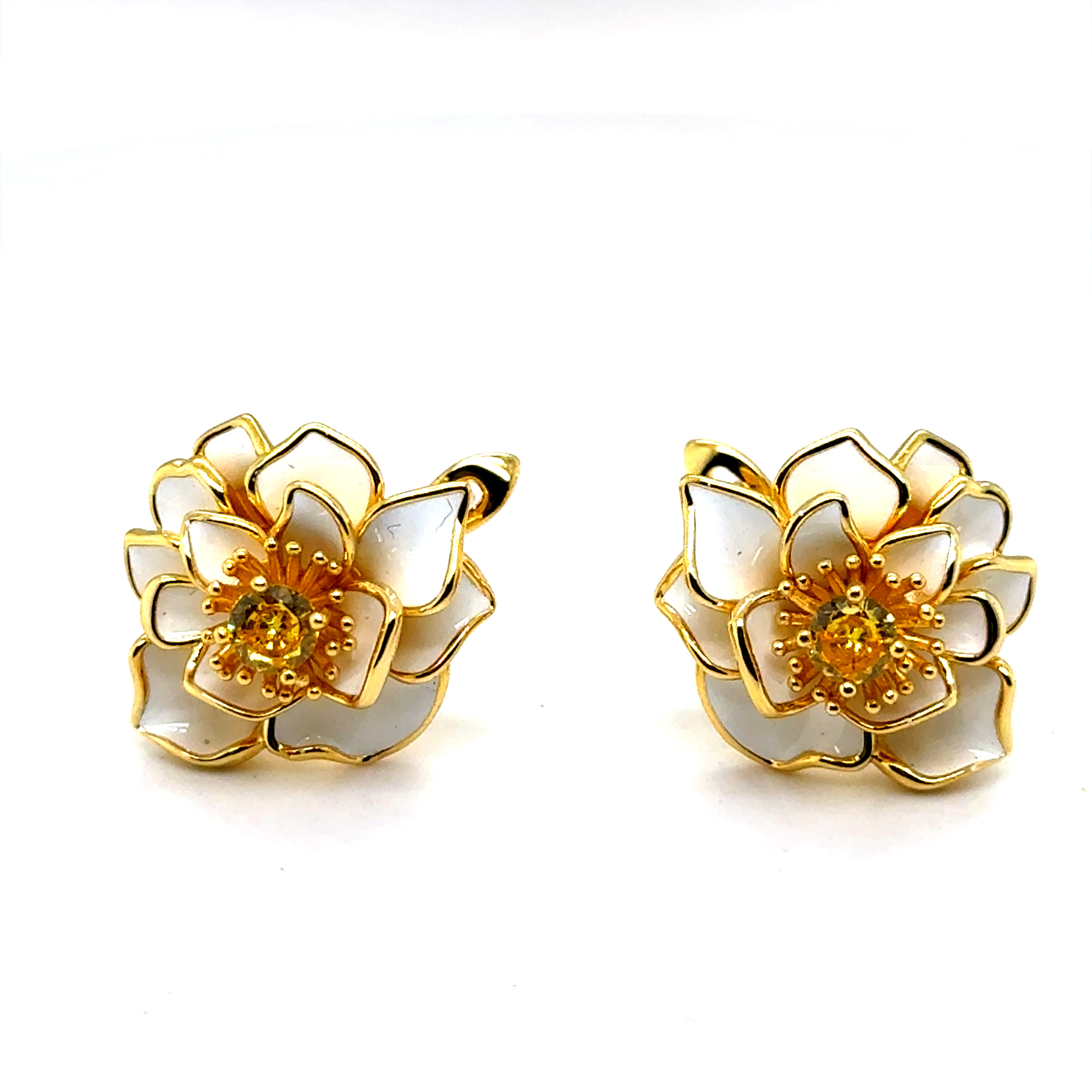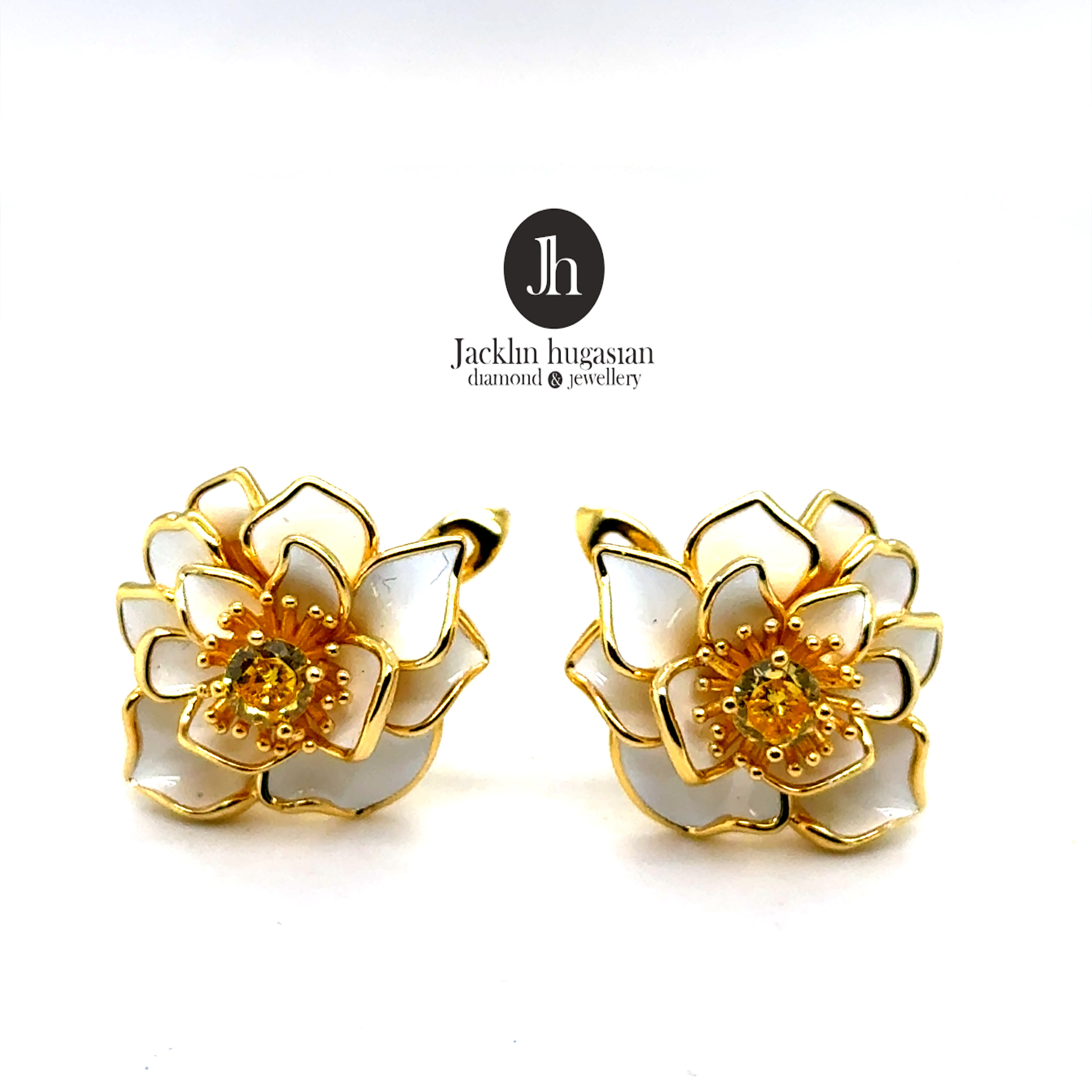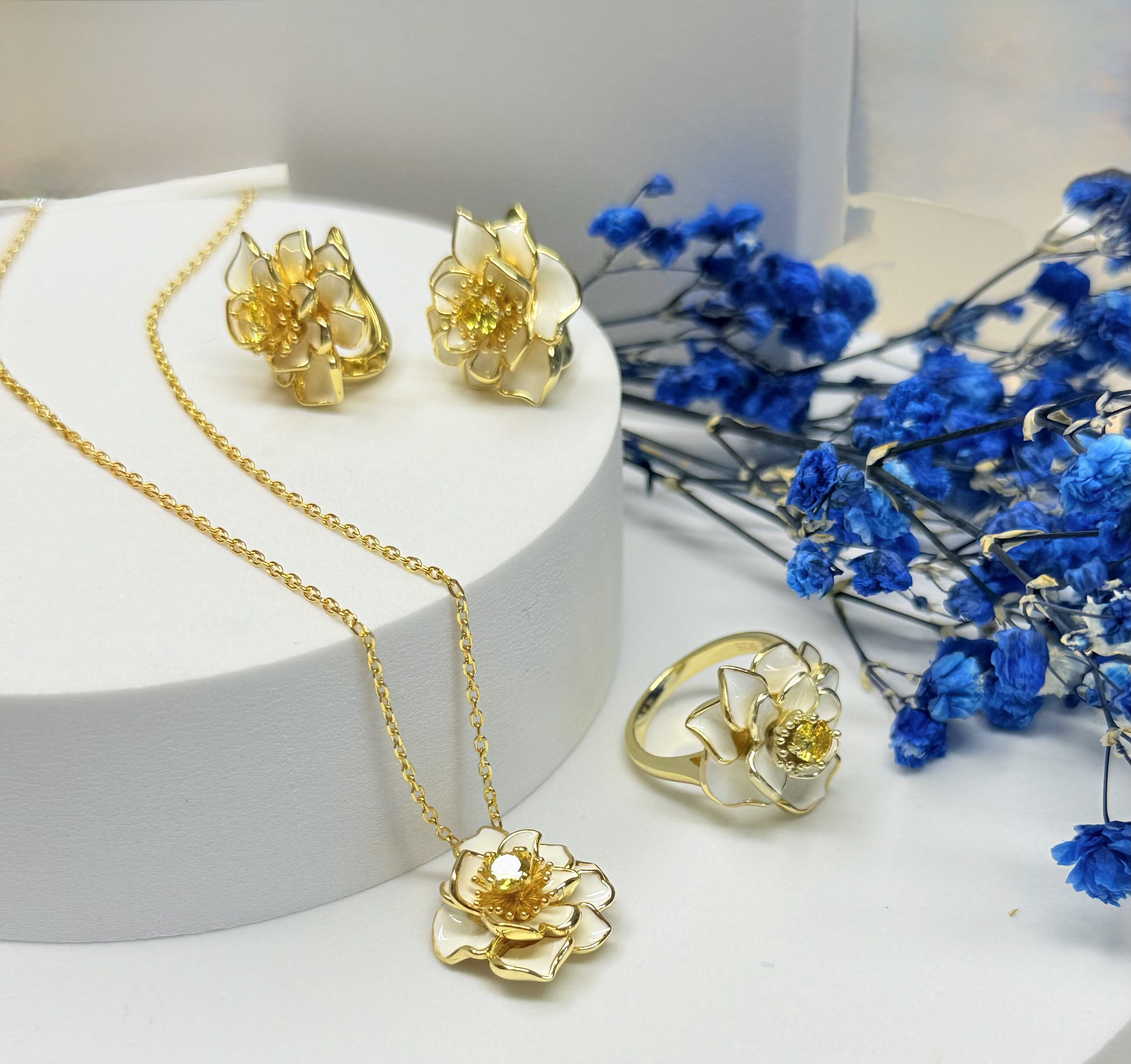 Комплект колие, обеци и пръстен от “Jacklin hugasian” в сребро с позлата с цитрин и емайл.