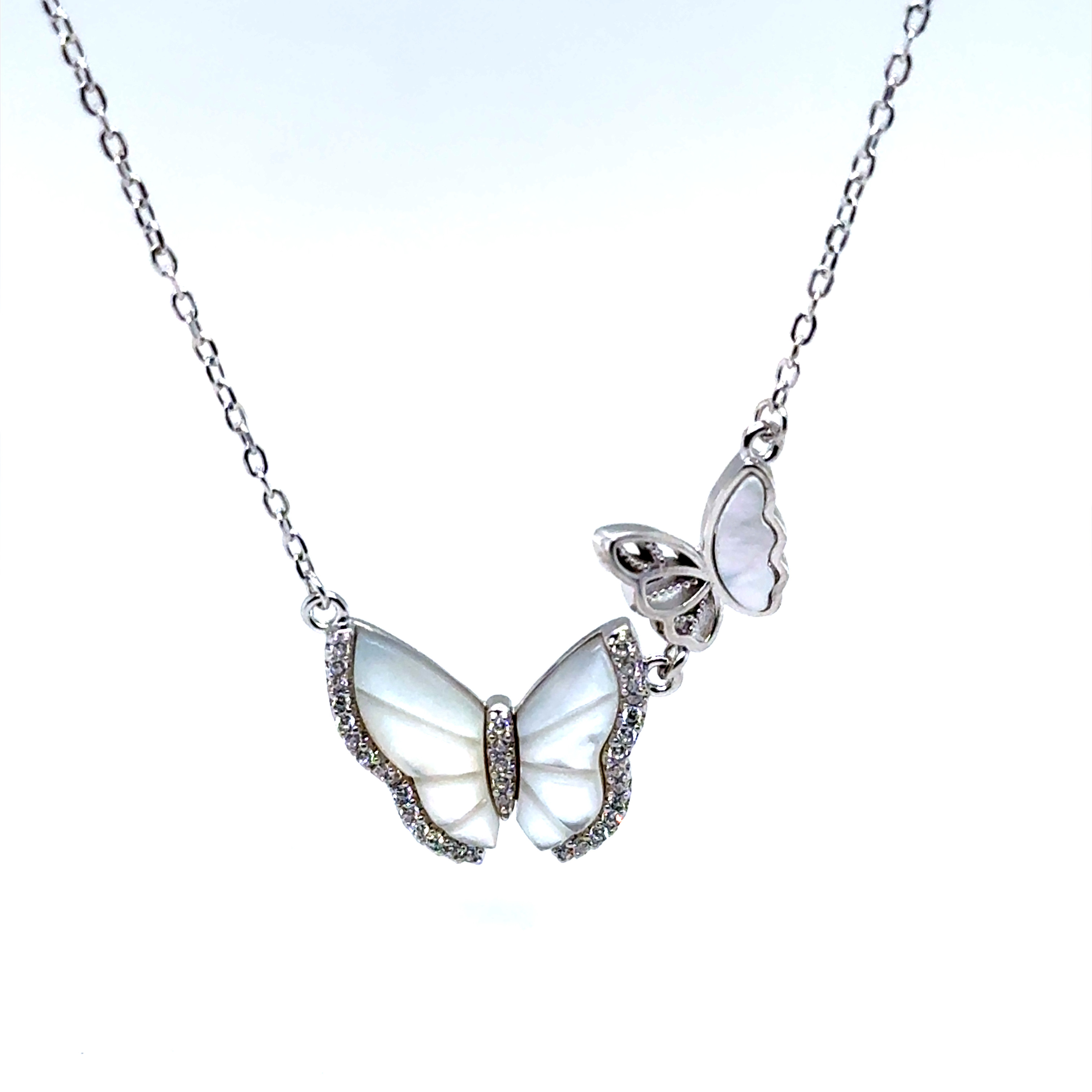 Комплект от колие и гривна от“Jacklin hugasian” в сребро със седеф и цирконии.