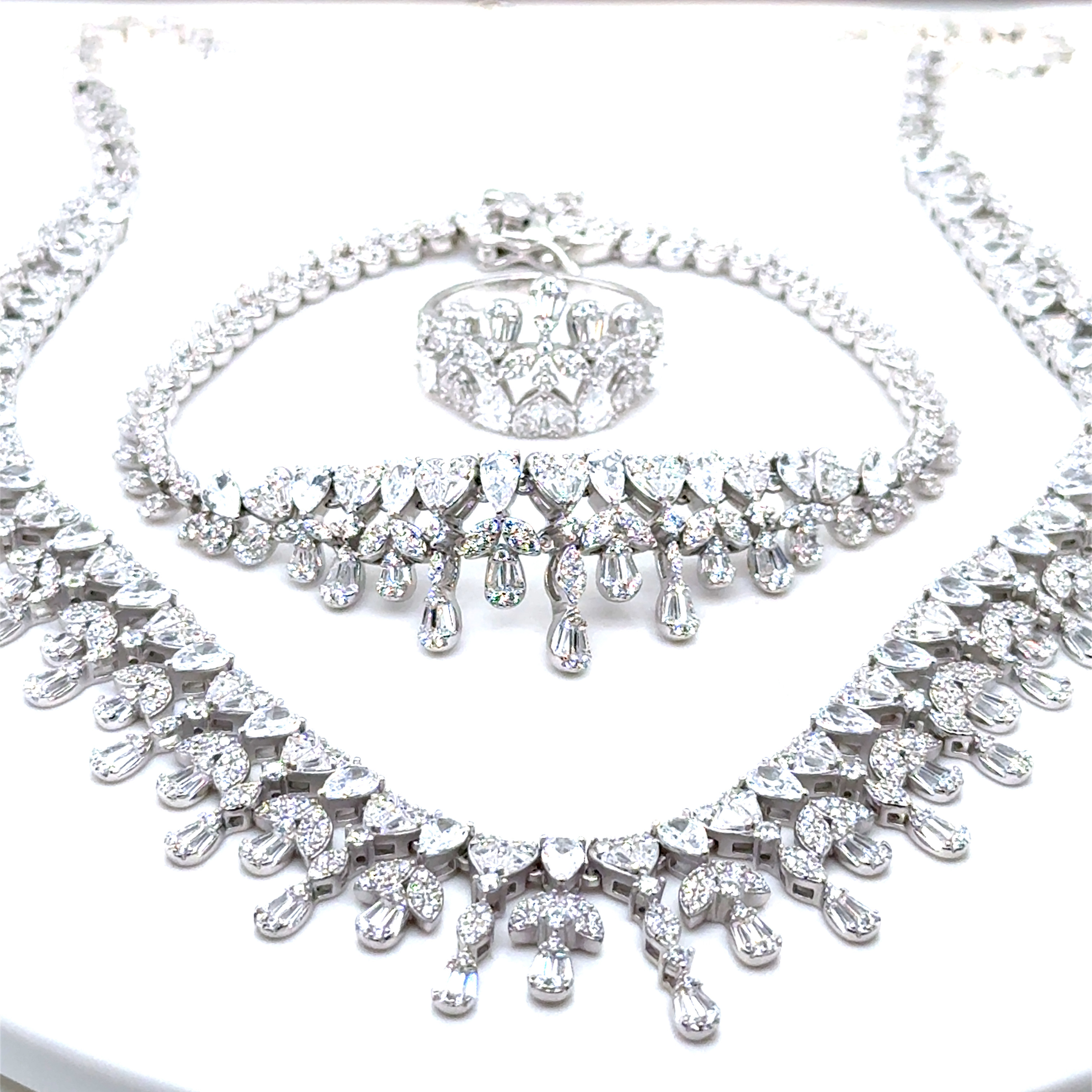 Комплект колие, обеци , пръстен и гривна от “Jacklin hugasian” в сребро с цирконии.