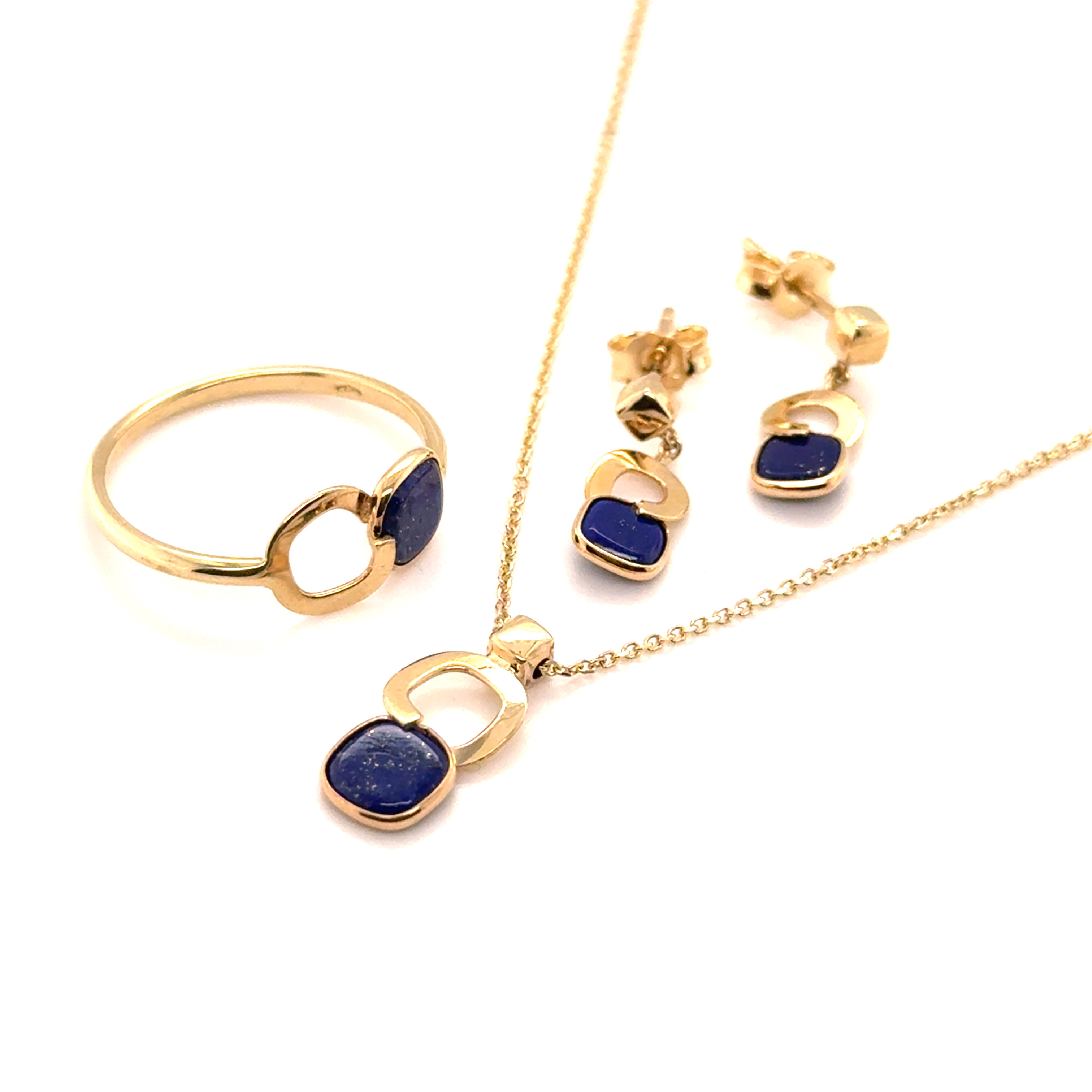 Комплект пръстен, обеци и колие от “Jacklin hugasian” в жълто злато с лапис лазули