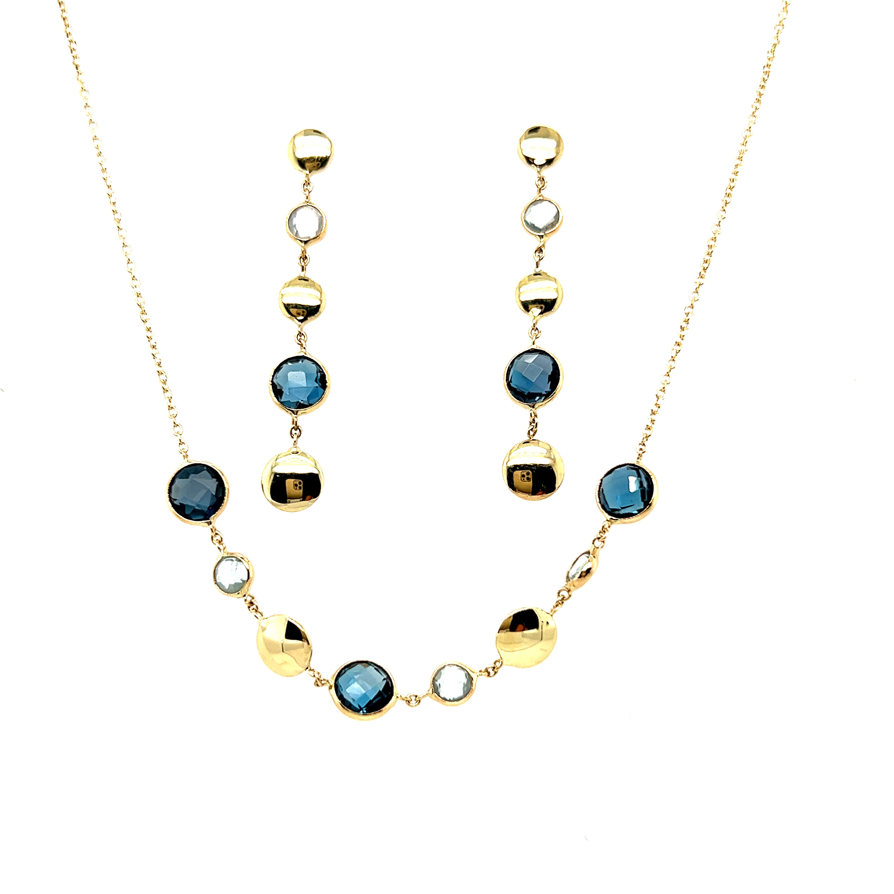 Обеци от “ Jacklin hugasian “ в жълто злато с аквамарин и лондон топаз.