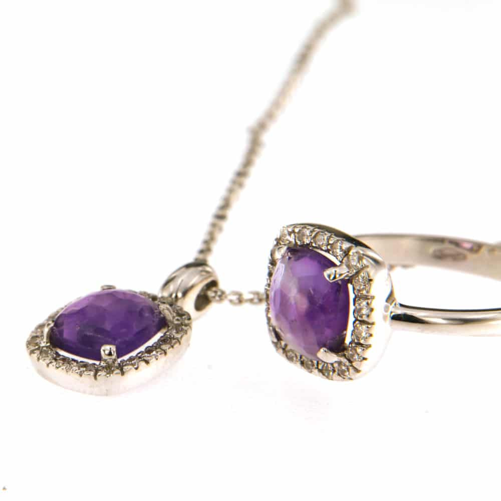 Колие и от "Jacklin hugasian" в бяло злато с аметист и циркони.