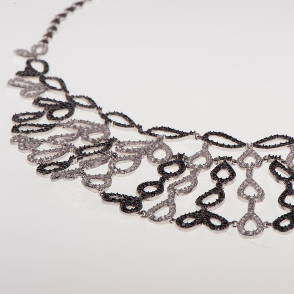 Колие от "Jacklin hugasian" сребро с оникси и цирконии. Дължина колие 45 см.