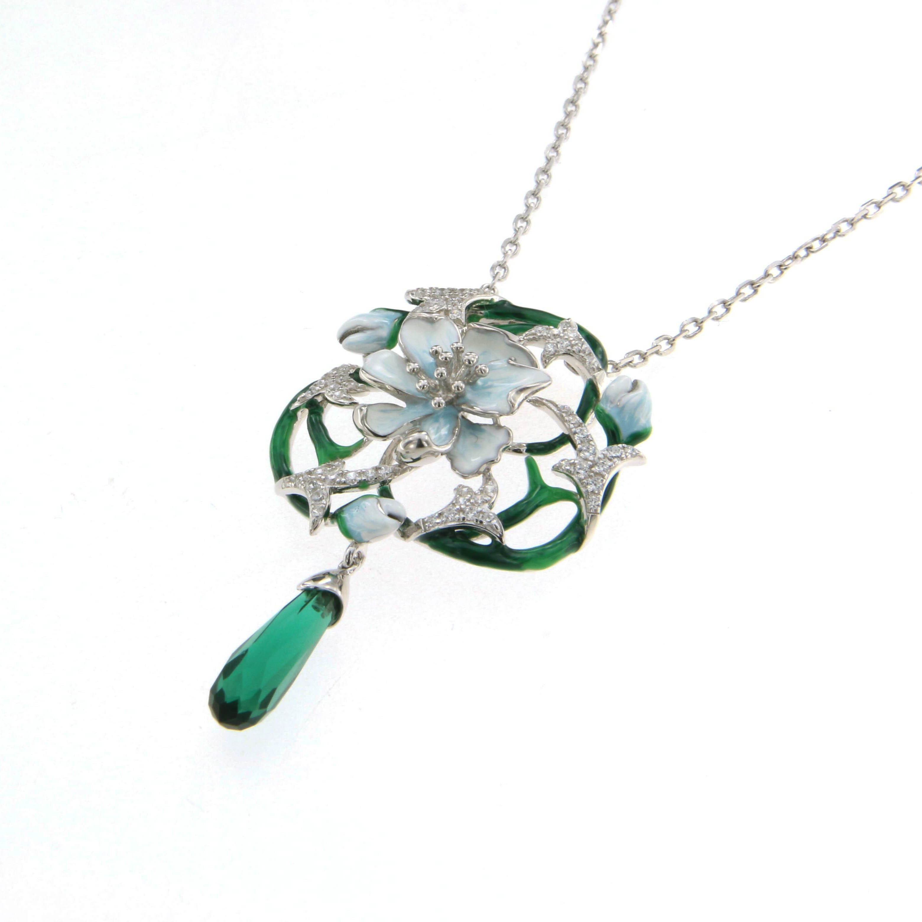 Колие от "Jacklin hugasian" в сребро с цветен емайл, изумруд и циркон.