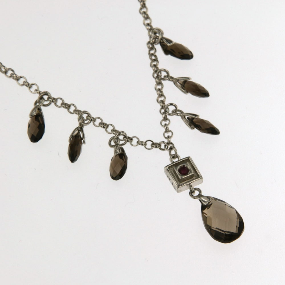 Колие от "Jacklin hugasian" в сребро с опушен топаз циркон и рубин. Дължина колие 45 см./ с удължител/. Колекция "ELLE".