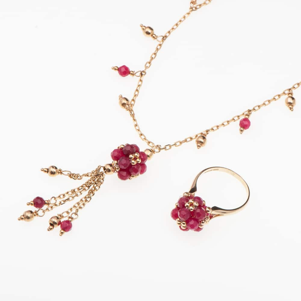 Колие от "Jacklin hugasian" в жълто злато с рубини.