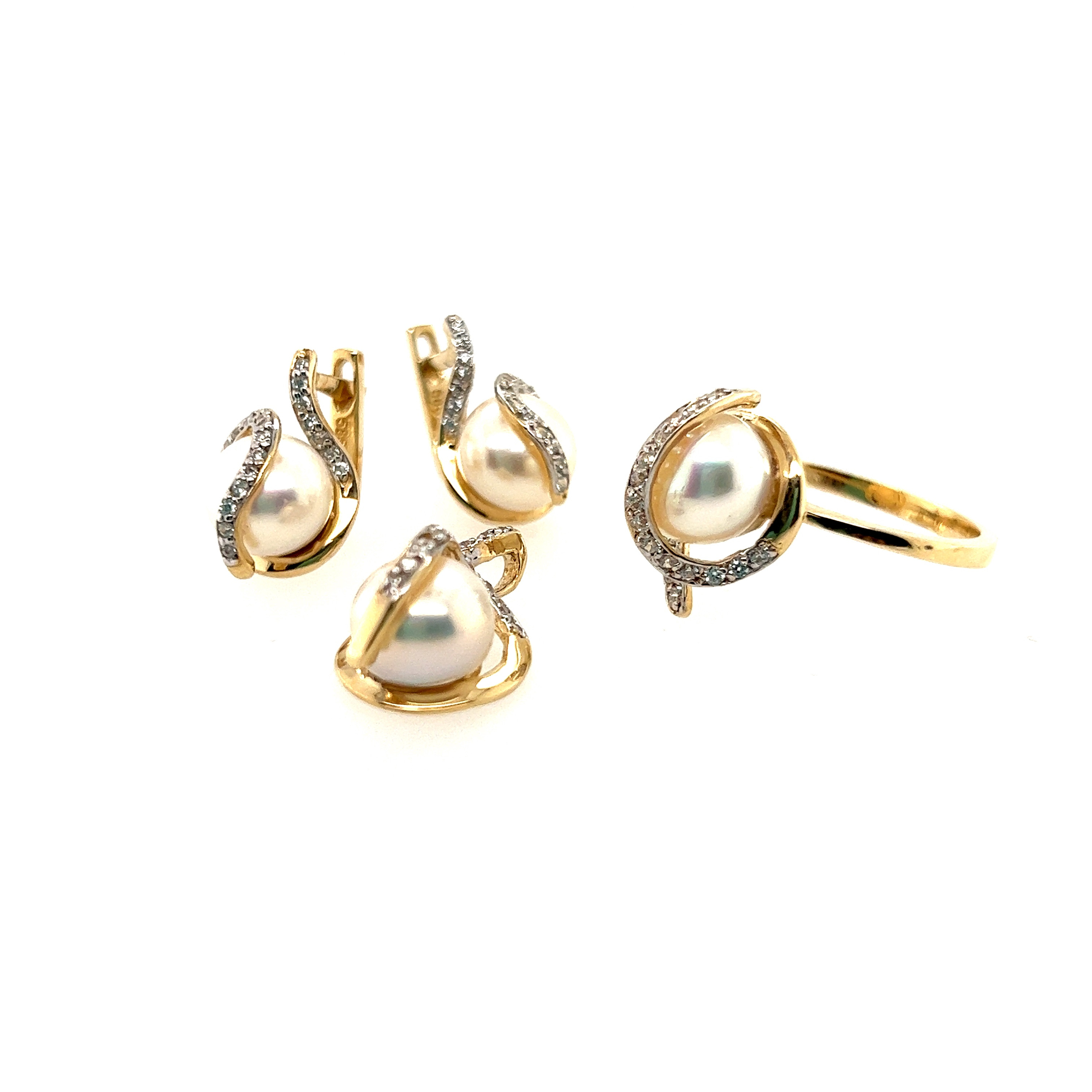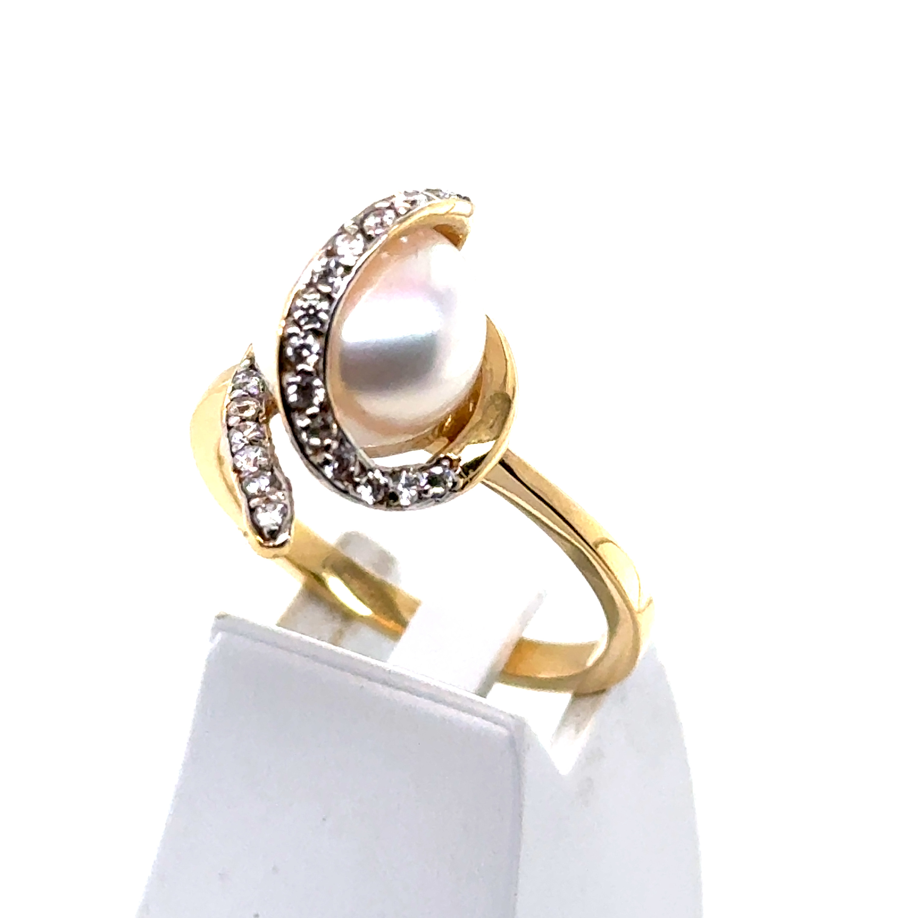 Пръстен от “Jacklin hugasian” в жълто злато с перла и цирконии.
