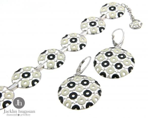 Комплект от "Jacklin hugasian" в сребро с разноцветен емайл.