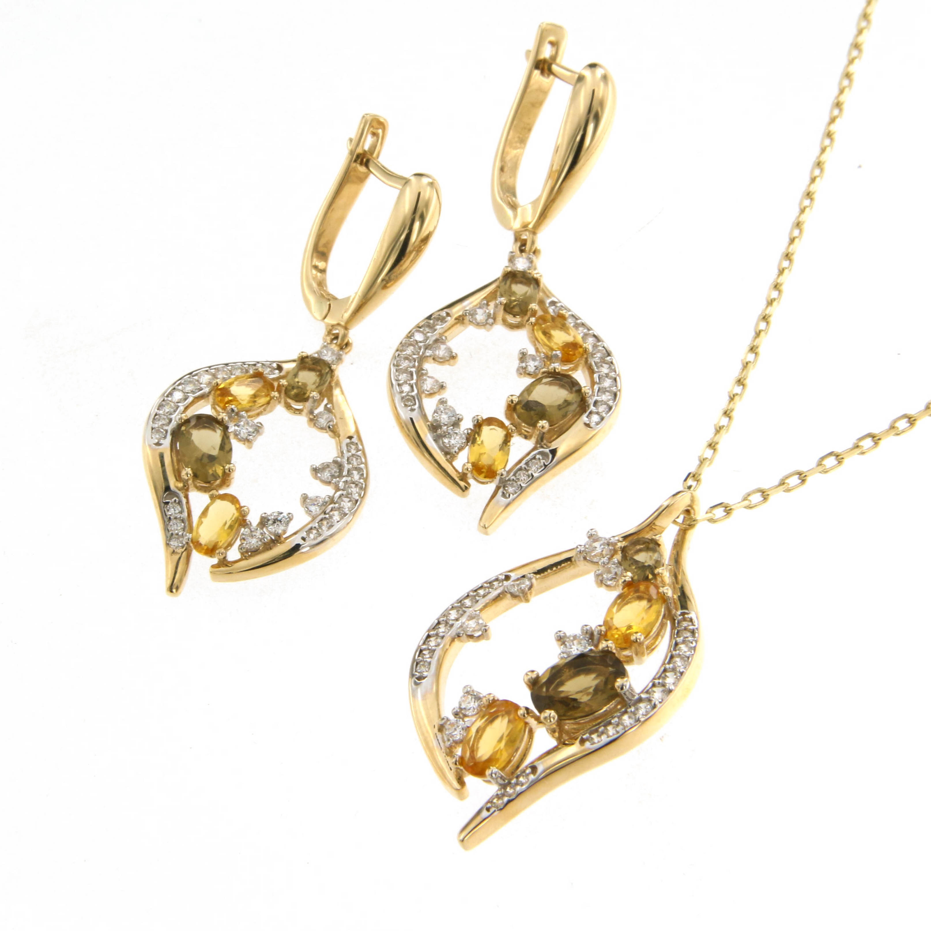 Комплект колие и обеци от “Jacklin hugasian” в жълто злато с топази и циркони.