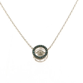 Комплект колие и пръстен от "Jacklin hugasian" в бяло злато с бял диамант и малки сини диаманти.