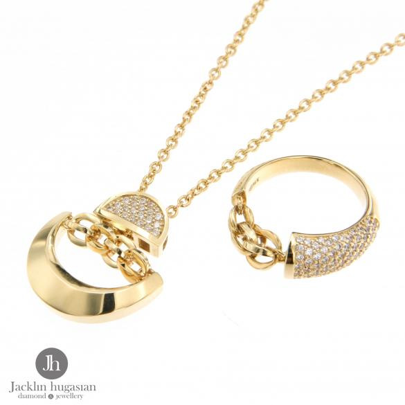 Пръстен от "Jacklin hugasian" в жълто злато гланц с цирконии.